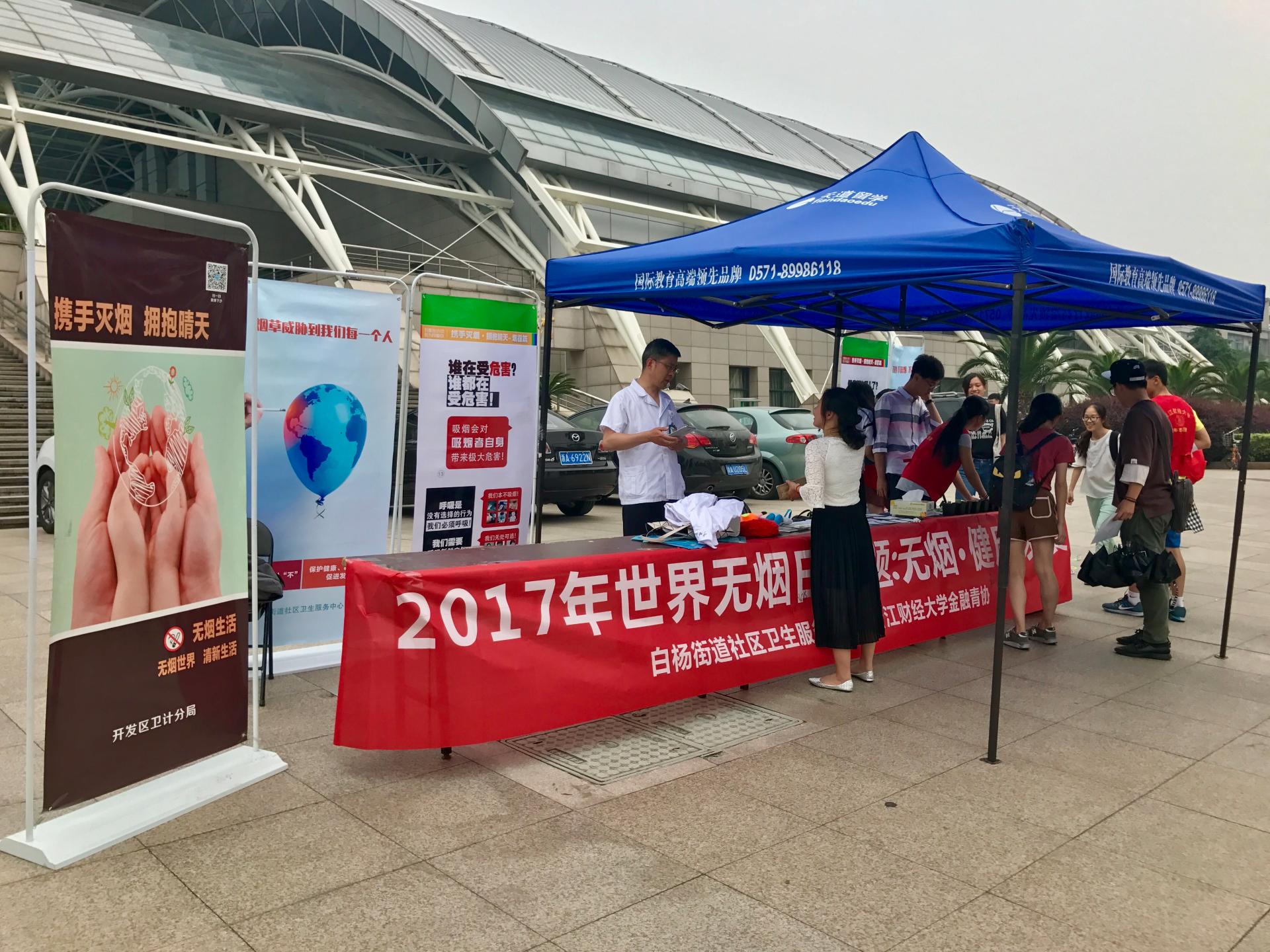 团委学生会实践部举办的第30个世界无烟日活动在我校西体育馆门口顺利举行,本活动旨在提高大家对吸烟和二手烟危害的认知,营造一个无烟、清洁、健康的公共环境。