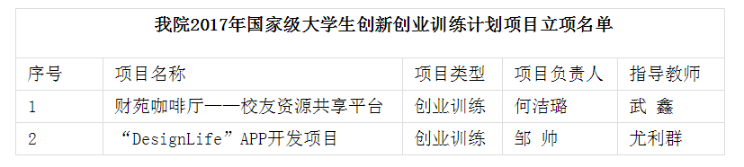 2017年国家级大学生创新创业训练计划项目名单日前公布,酷爱成人网 学子荣获2项2017年国家级大学生创新创业训练计划项目。