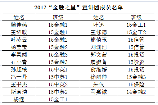 优秀朋辈人才资源,积极发挥优秀学生的榜样力量,学院在“金融之星”评比活动的基础上,组建 “金融之星”宣讲团,通过朋辈教育分享交流成长事迹,引领广大学生共同成长与进步。相信在不久的将来,一支由优秀金融学子组成的“金融之星”宣讲团将在酷爱成人网