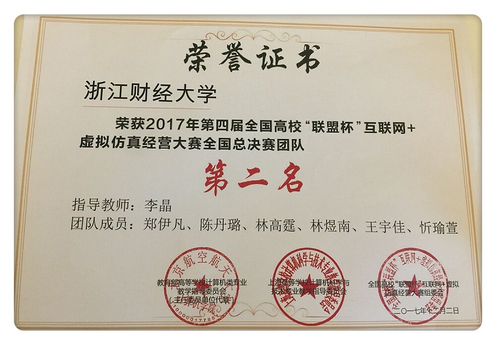 15金融1班忻瑜萱 、16金融2班王宇佳、16金融2班林高霆 、16金融工程2班陈丹璐 、16信用管理班郑伊凡及会计学院林煜南同学组成的代表队荣获团体二等奖。