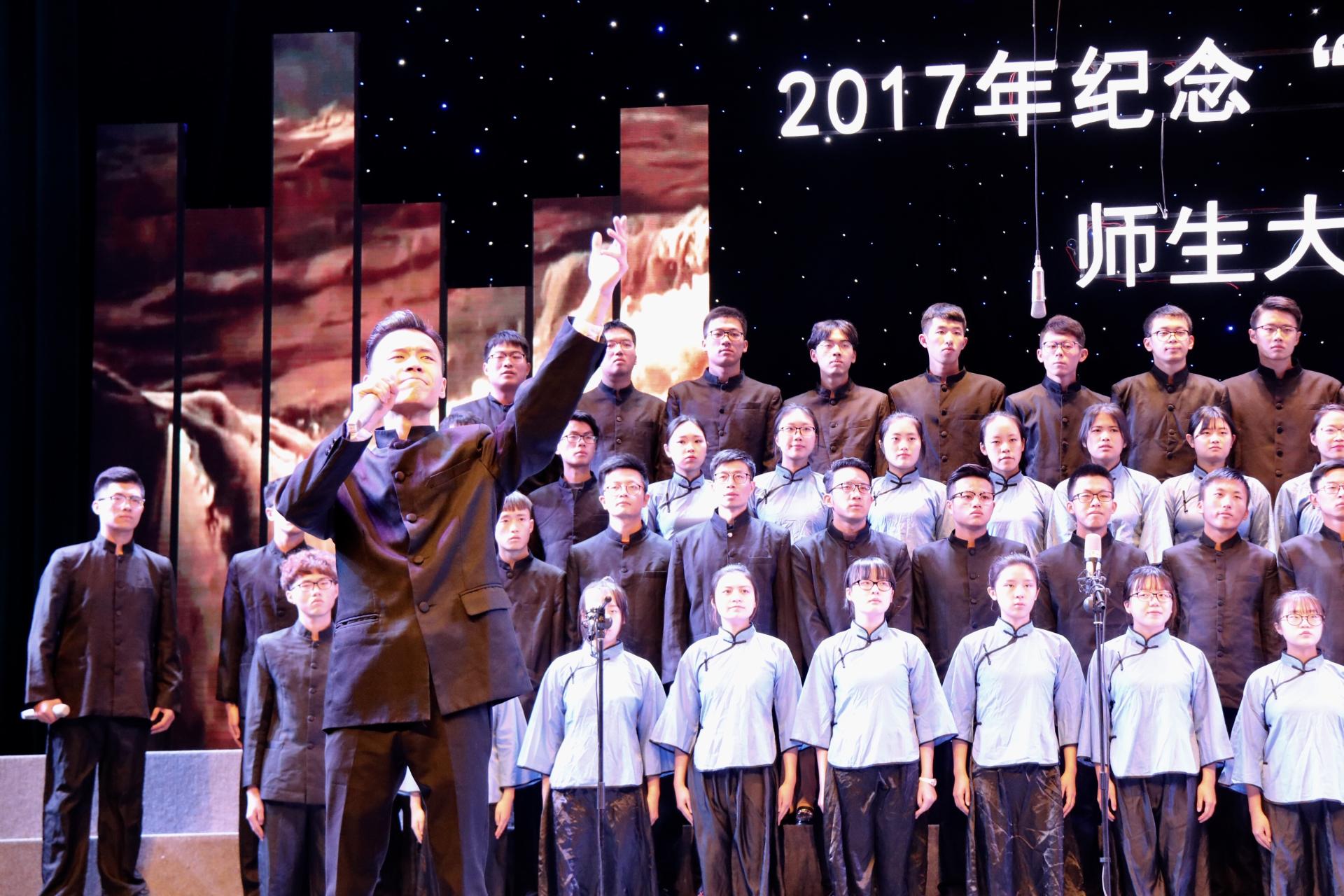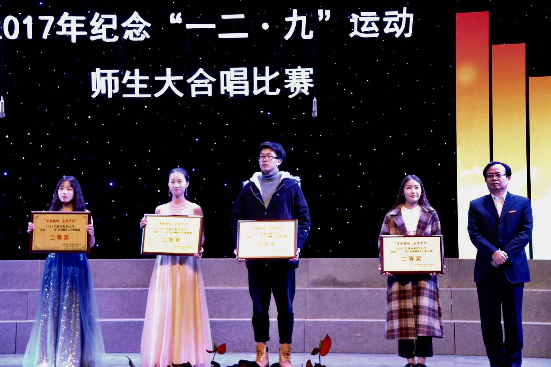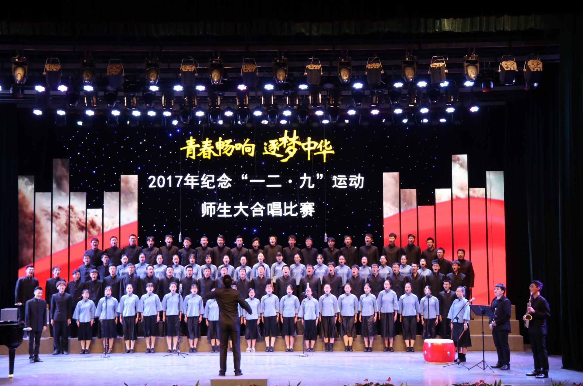 2017年纪念“一二九”运动师生大合唱比赛在校文化中心剧场隆重举行。校党委书记李金昌,校党委委员、副校长黄建新,校党委委员、纪委书记陈金方,相关职能部门负责人以及各学院党委书记和团委书记出席了本次比赛。比赛邀请到浙江省教育厅艺术教育委员会主任鲁晓红等艺术精英作为评委。