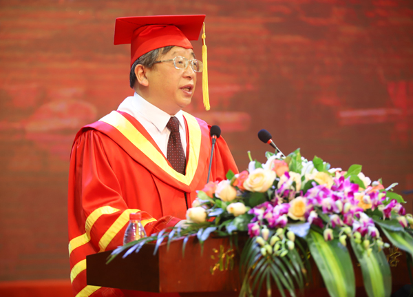 典礼上,校长钟晓敏作了题为《拥抱时代,创造幸福》的致辞。他寄语毕业生在逐梦于社会之际要志存高远,引领未来;笃实力行,知行合一;追求卓越,精益求精;终身学习,迎接挑战。他说“我和母校会在这里等待着每一位同学的消息,无论是‘宏大叙事’,还是‘日常生活叙事’,母校都会在这里等候着、祝福着并且自豪着……”深深触动了在场的每一个人。