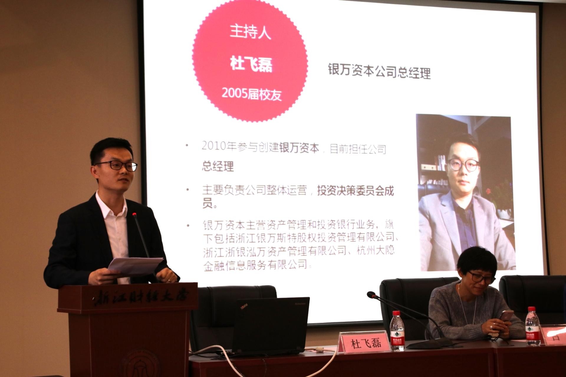 “明栋基金”秘书长吕霞等三位优秀校友担任本次校友沙龙分享嘉宾,银万资本公司总经理杜飞磊校友担任主持人。四位优秀的校友分享了他们对于当前金融市场、大学生就业、学习生活等方面的独到见解,让在座的金融学子受益匪浅。