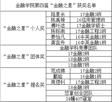 第四届“金融之星”评选大赛暨颁奖典礼圆满结束。青春需要奋斗,理想需要坚持。也希望广大金融学子以此为榜样,为创造更辉煌的明天而努力奋斗。