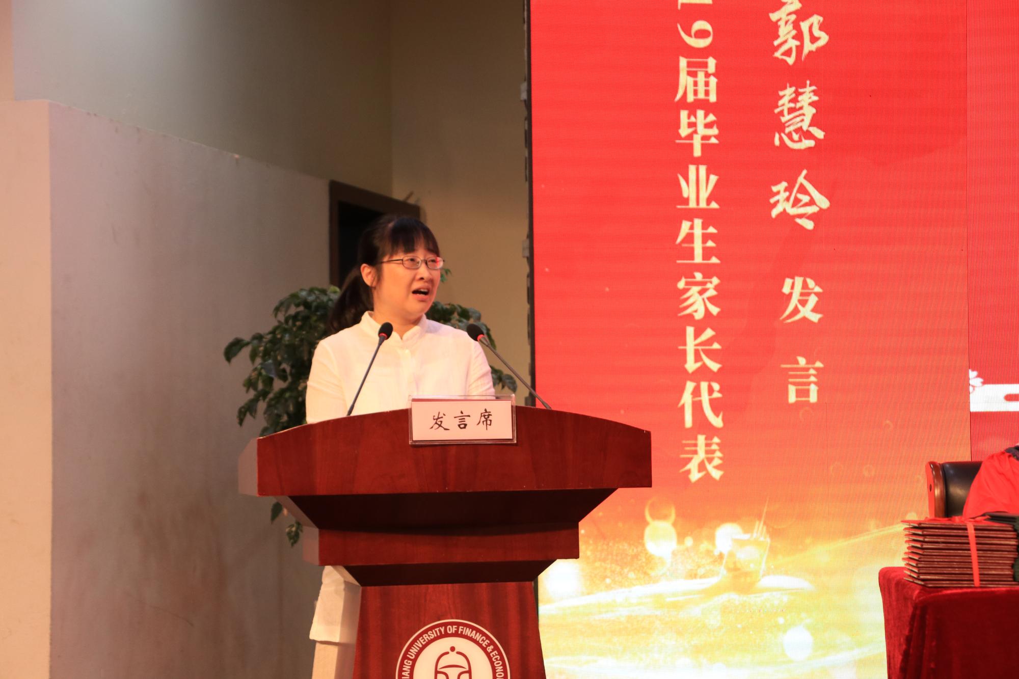 家长代表15金融1班李泓泽的母亲郭慧玲女士向全院教师表达了感谢之情,祝福全体师生的未来更加美好。