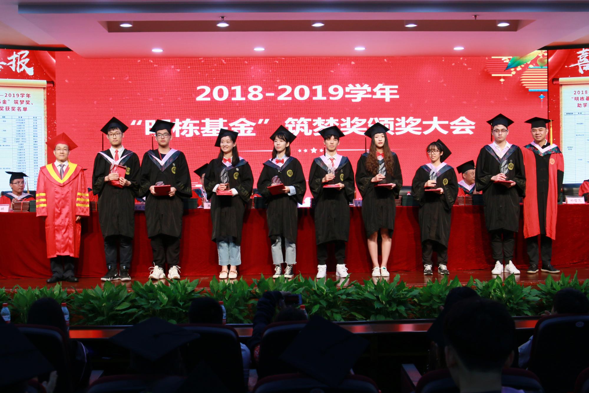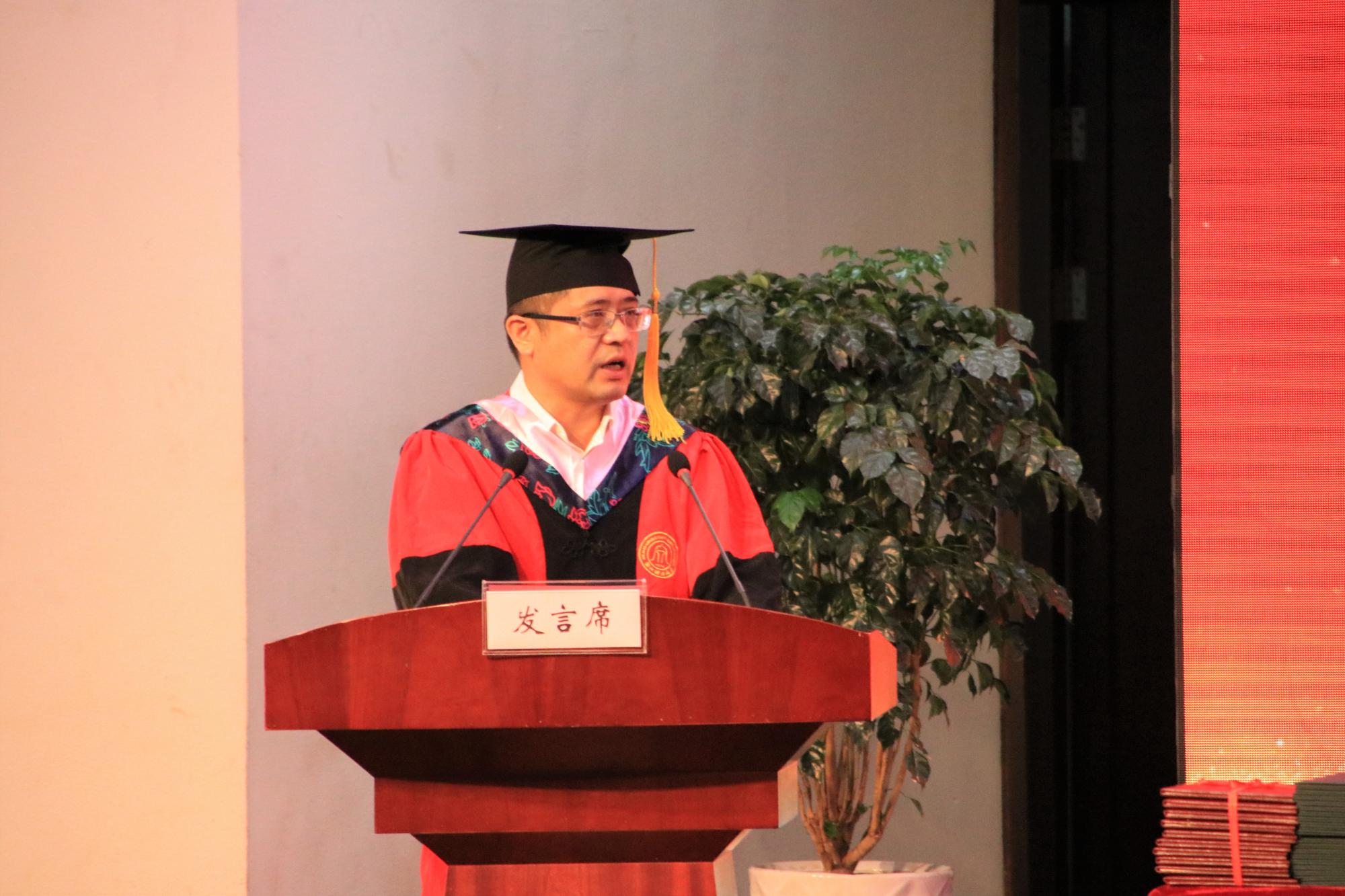 副院长王聪聪、朴哲范分别宣读了2019届毕业生获得毕业证书和学位证书情况、2019届毕业生境内外升学情况,党委书记蔡国金宣读了2019届省级优秀毕业生、“明栋基金”获奖名单。