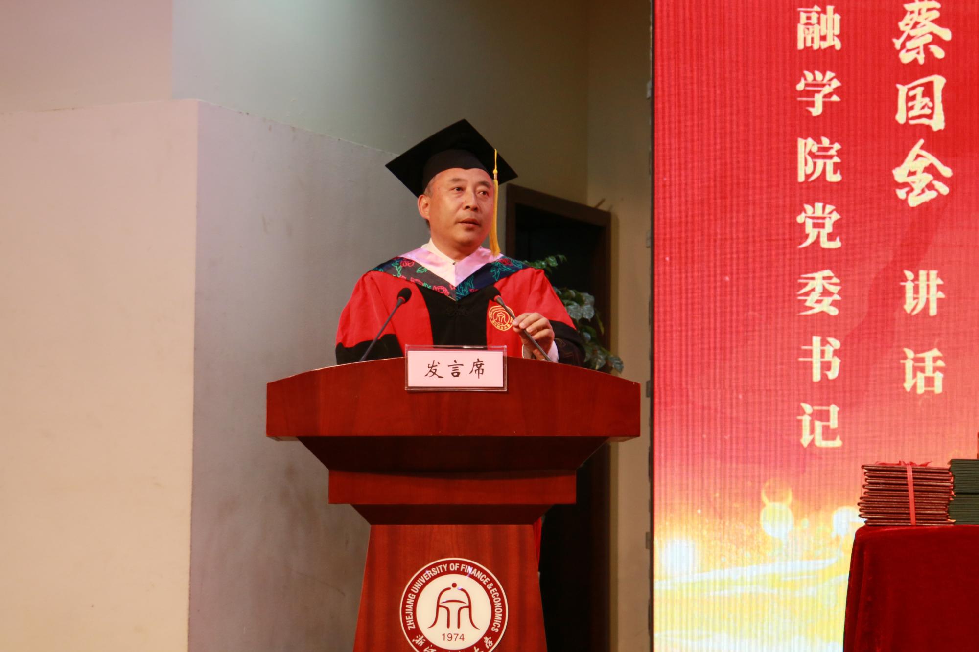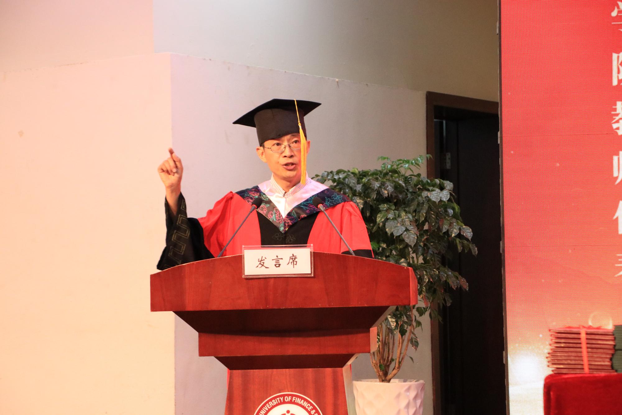 典礼在雄壮的国歌中开始。首先,院长陈荣达发表讲话对2019届毕业生们表示热烈的祝贺和衷心的祝愿,希望金融学子们能在未来的人生道路上,势如破竹,再创辉煌。