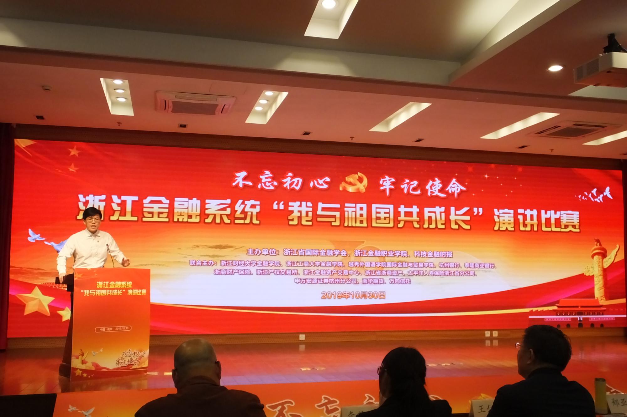 为庆祝中华人民共和国成立70周年,深入开展“不忘初心、牢记使命”主题教育,全面展现浙江金融人爱党爱国的深厚情怀,10月30日下午,浙江金融系统在浙江金融职业技术学院举行“不忘初心 牢记使命·我与祖国共成长”演讲比赛。