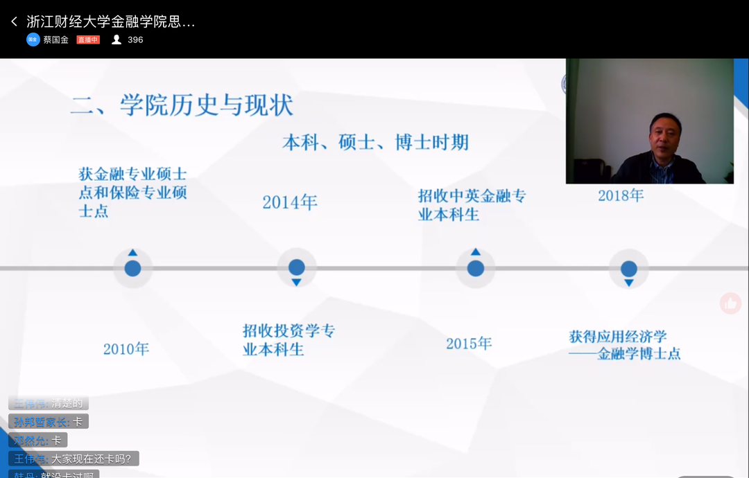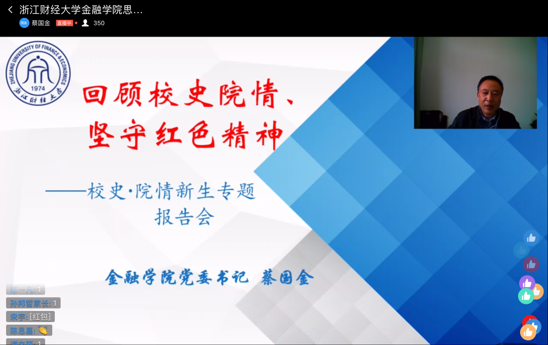 2020级新生思政第一课通过线上形式顺利开展。学院党委书记蔡国金出席并作“校情院史”新生专题报告。学院管理团队以及全体新生共同参与大会。本次大会由学院团委书记王伟伟主持。