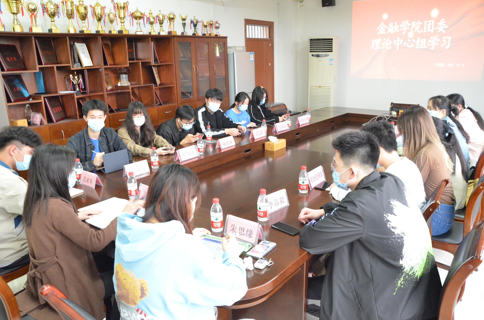 团委理论学习中心组2021年第五次集中学习会在3号楼422举行,会议专题学习《习近平在纪念辛亥革命110周年大会上的讲话》精神,学院团委书记王伟伟、团委副书记范家昕、学生会主席团成员及团委学生会全体部门负责人参加此次学习会,会议由范家昕主持。