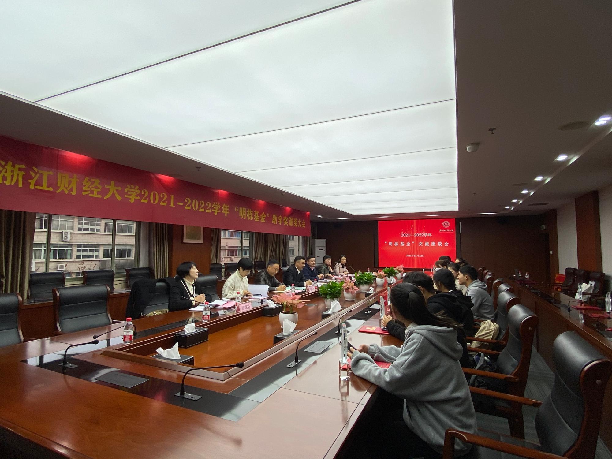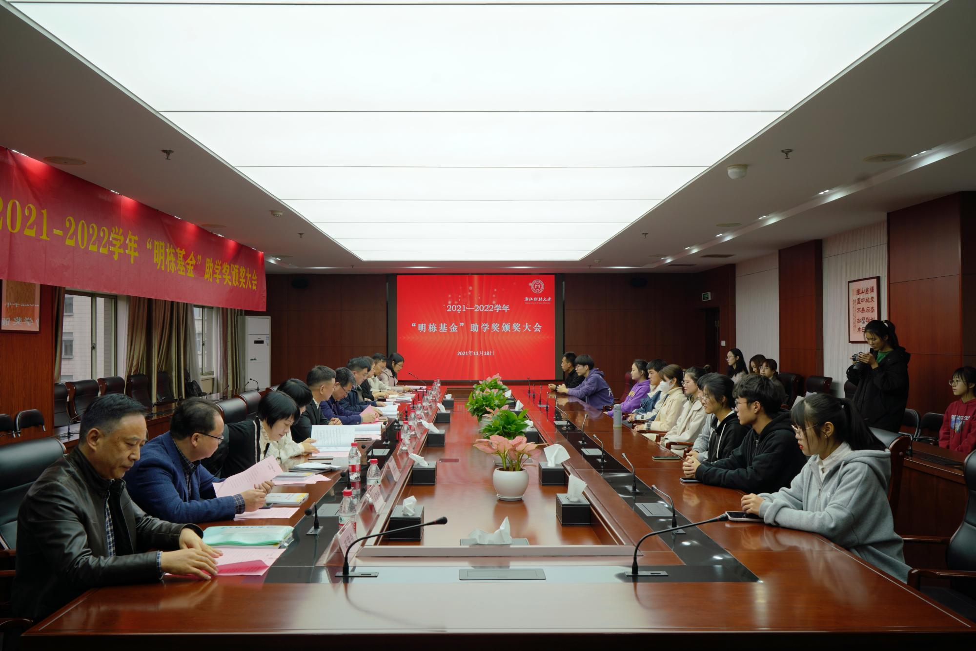 11月18日下午,2021-2022学年“明栋基金”助学奖颁奖大会在我校行政楼412顺利举行。副校长、校党委委员徐晓东,蓝山投资有限公司董事长王晓明,浙江盈阳资产管理股份有限公司总经理孔繁岗,蓝山投资有限公司总裁王柳琳、总裁助理王丽荣,“明栋基金”管理委员会秘书长陈锡芬,校友办主任张红英,校党委研工部部长陈星平,校党委学工部副部长汪风易,酷爱成人网