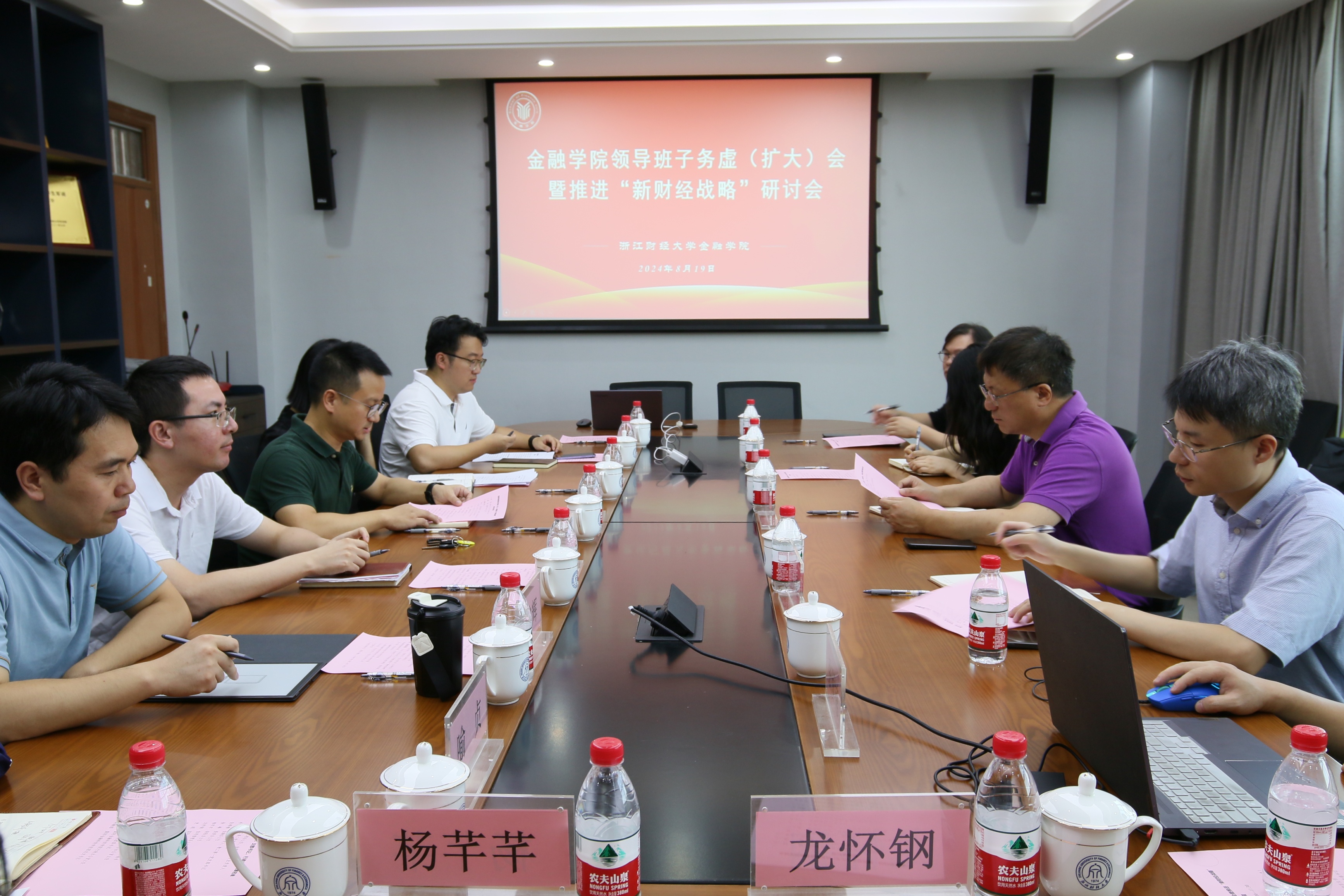 8月19日,金融学院召开领导班子务虚(扩大)会暨推进“新财经战略”研讨会。会议深入学习贯彻党的二十大、二十届三中全会精神,全面分析研讨加快学院高质量发展的目标任务和思路举措。 校党委副书记、副校长(主持行政日常工作)魏江出席会议并讲话,金融学院和盈阳金融科技学院领导班子、系主任、支部书记、项目主任、行政主管代表等参加会议。
