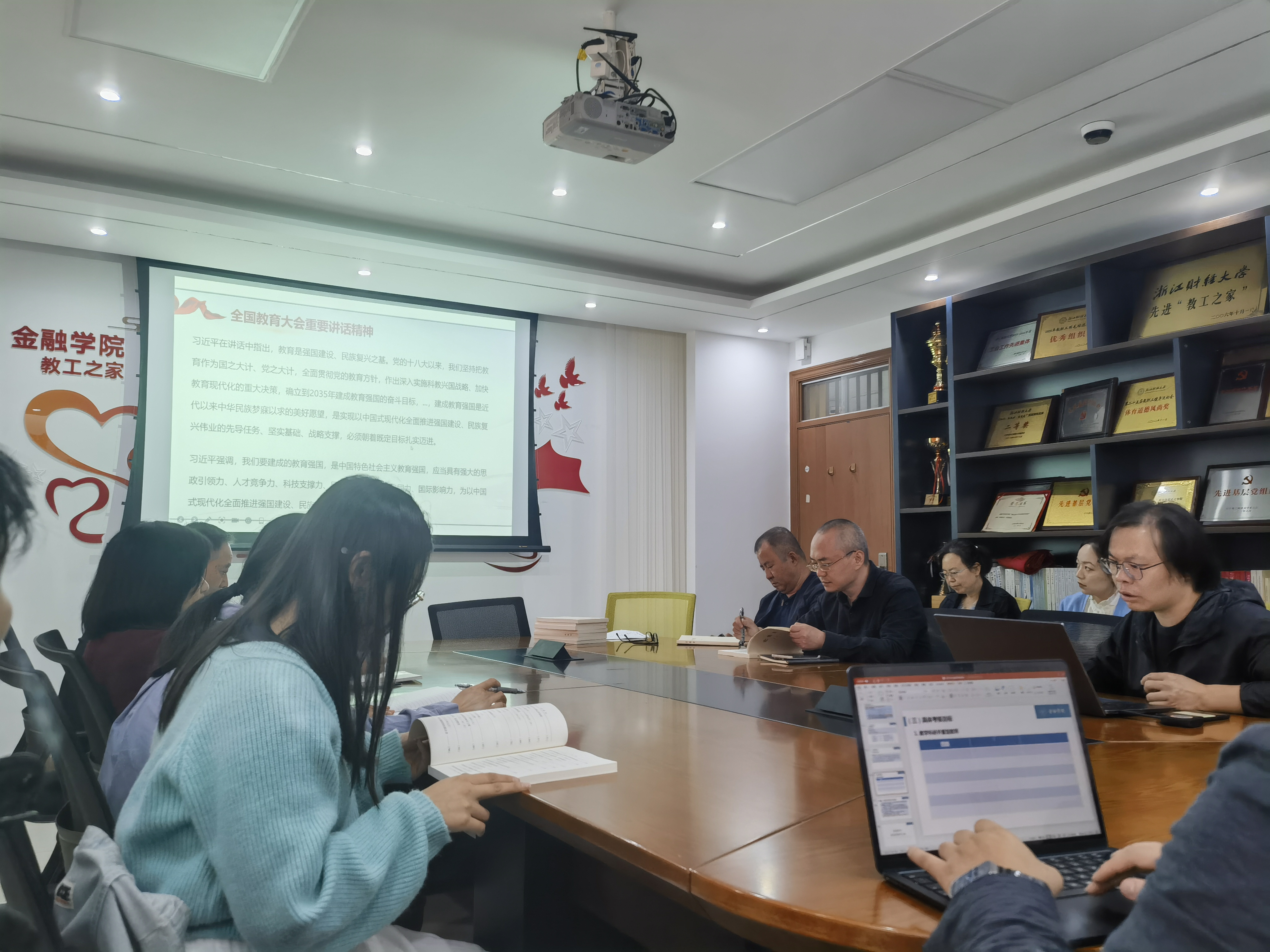 在活动中,教师团队一起解读习近平总书记的讲话精神,围绕立德树人这个根本任务,探讨了如何在金融学专业中培养德智体美劳全面发展的社会主义建设者和接班人。大家一致认为,坚持社会主义办学方向,运用系统观念,正确处理各种重大关系,是推动金融学专业高质量发展的关键。教师团队共同回顾了党的十八大以来我国教育事业的发展历程。习近平总书记指出,教育是强国建设、民族复兴之基,我们党始终将教育摆在国家发展的重要位置,致力于到2035年建成教育强国。这一宏伟目标为金融学专业的建设和发展提供了强大的动力。