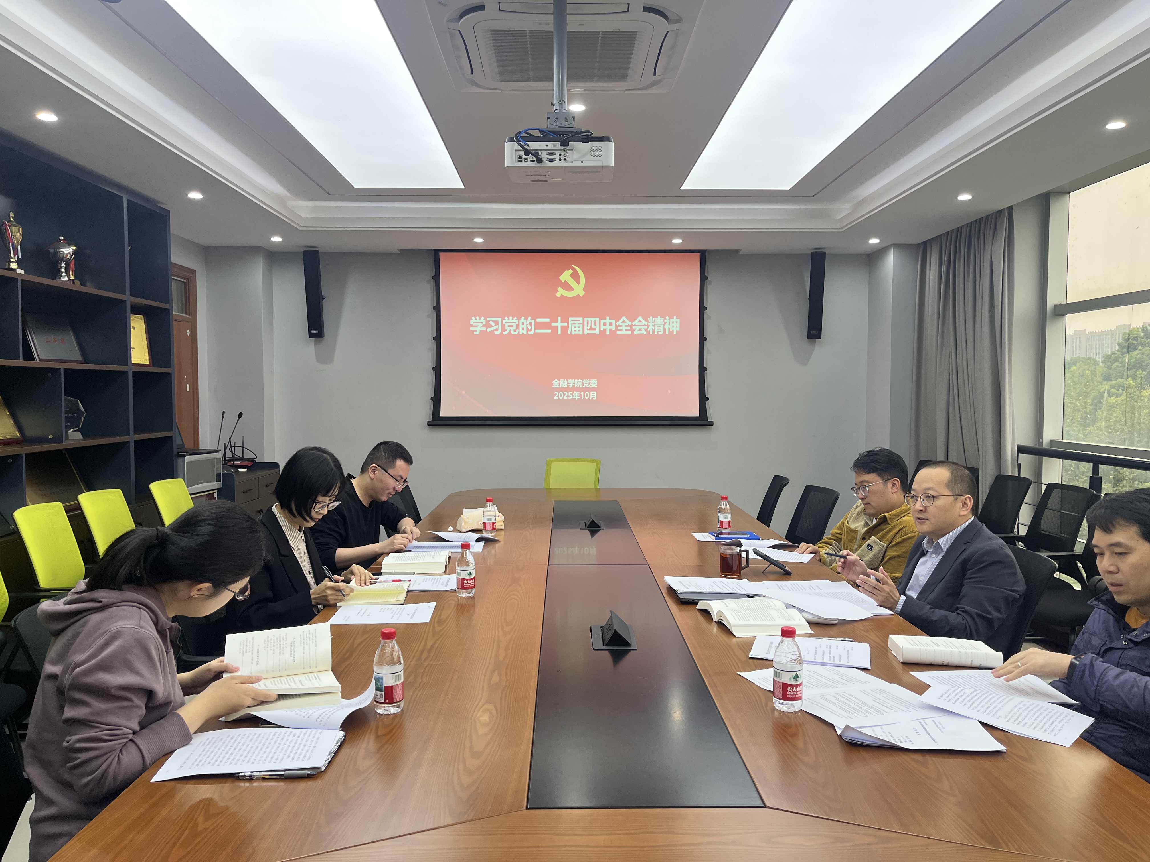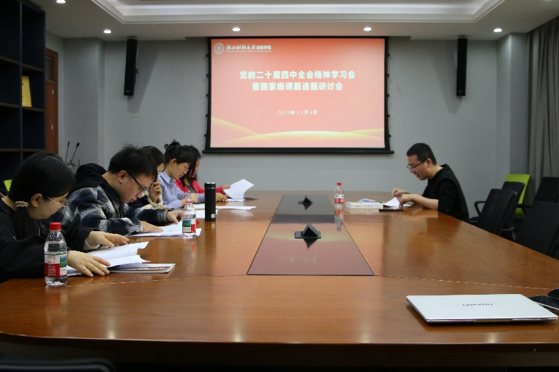 学院党委坚持学思用贯通、知信行统一,将学习贯彻全会精神与谋划推动学院“十五五”高质量发展紧密融合。11月6日专门组织召开党的二十届四中全会精神学习会暨国家级课题选题研讨会,副院长林祺领学全会精神及金融强国建设重要论述,引导拟申报2026年国家级课题的教师深刻领会“五篇大文章”等战略指向。与会教师围绕“金融监管体制完善”“金融服务中国式现代化”“数字金融与数据治理”等前沿方向展开深入研讨,着力将国家战略需求转化为高质量学术选题。