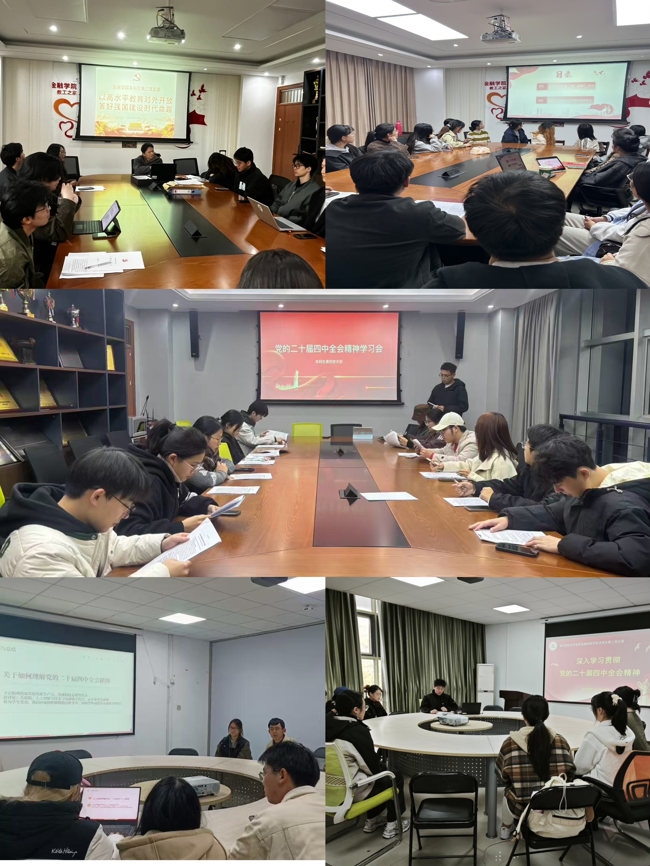 各师生党支部充分运用“三会一课”、主题党日等载体,通过支部集中学习、个人自主学习、线上线下联动学习等多种形式,组织全体党员原原本本学、联系实际系统学习全会精神,重点解读《中共中央关于制定国民经济和社会发展第十五个五年规划的建议》中与高等教育、金融领域相关的部署要求。着力推进党员学习全覆盖,引导全体党员在学思践悟中坚定理想信念,主动担当作为,将学习成果转化为推动支部建设和业务工作的实际动力。