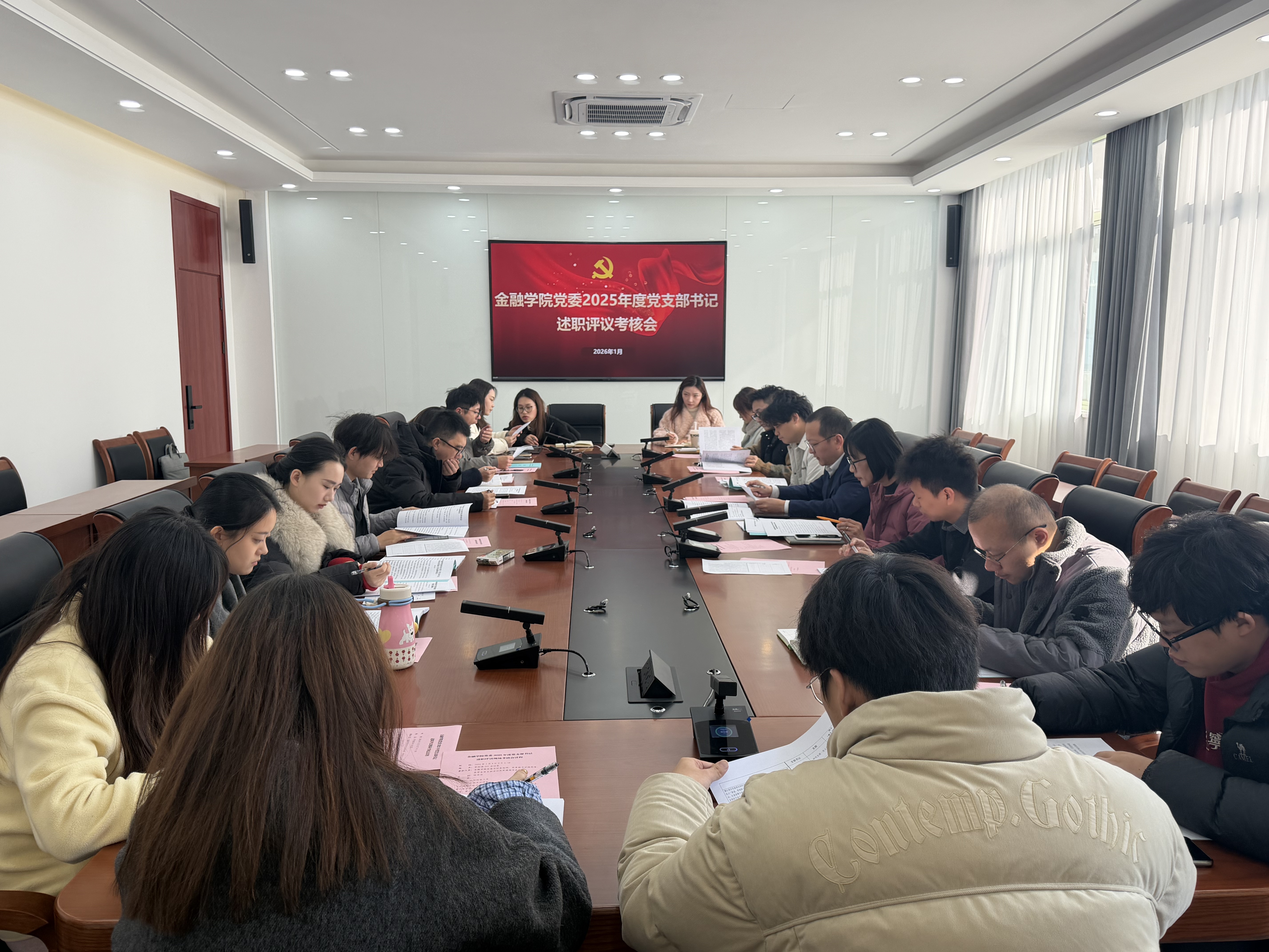 党委召开2025年度党支部书记抓基层党建工作述职评议会。学院党委领导班子、各师生党支部书记、党建指导老师参加会议。