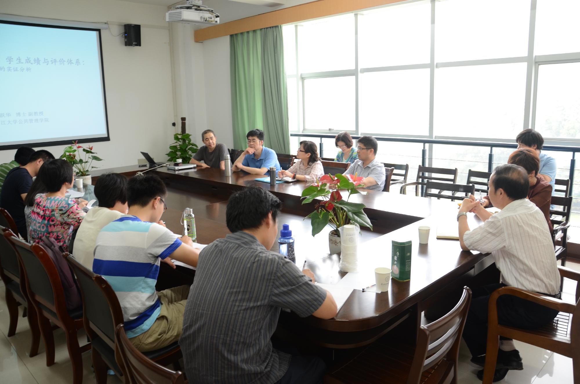 的教师团队进行了学术探讨。首先,他简单介绍了浙江大学的保险学科设置情况及成员架构,并着重选择了中级保险学、社会保险学为例子传授了独特的教学模式,其中包括教材的选定、如何阅读相关的文献资料、有特色有效果的授课方式。而张教授自创的独特交作业和考试形式能够及时地督促大学生将平时课上传授的内容消化、吸收,受到了在座教师的推崇。此外,张教授还通过几个典型的案例分析,如:如何评价重点中学和普通中学的差异等来剖析教学中最为有效的方式。