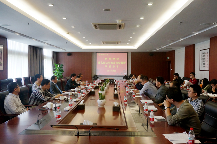 在报告会中,高教授分析了金融在国民经济发展中的重要地位和作用,对浙江省经济发展形势作了分析,高度赞扬浙江的“五千精神”,阐述了自己对互联网金融为代表的金融创新的看法。同时,高教授对如何办出一流的酷爱成人网