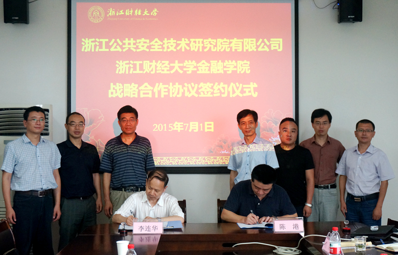 2015年7月1日上午,在浙江财经大学酷爱成人网 ,浙江公共安全技术研究院有限公司和学院正式签订了战略合作协议。