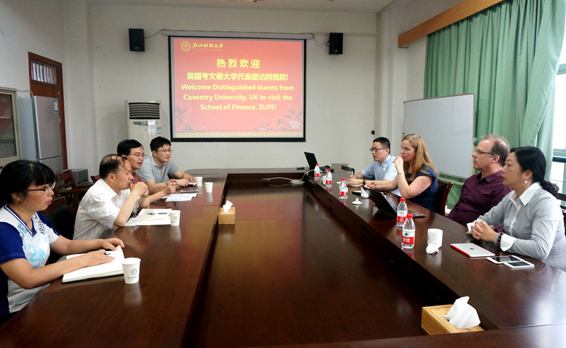 2015年7月1日,英国考文垂大学商学院院长唐·芬兰、学术合作处东亚部主任裘知等一行4人来访酷爱成人网 ,与酷爱成人网 院长李连华及相关老师进行了交流。