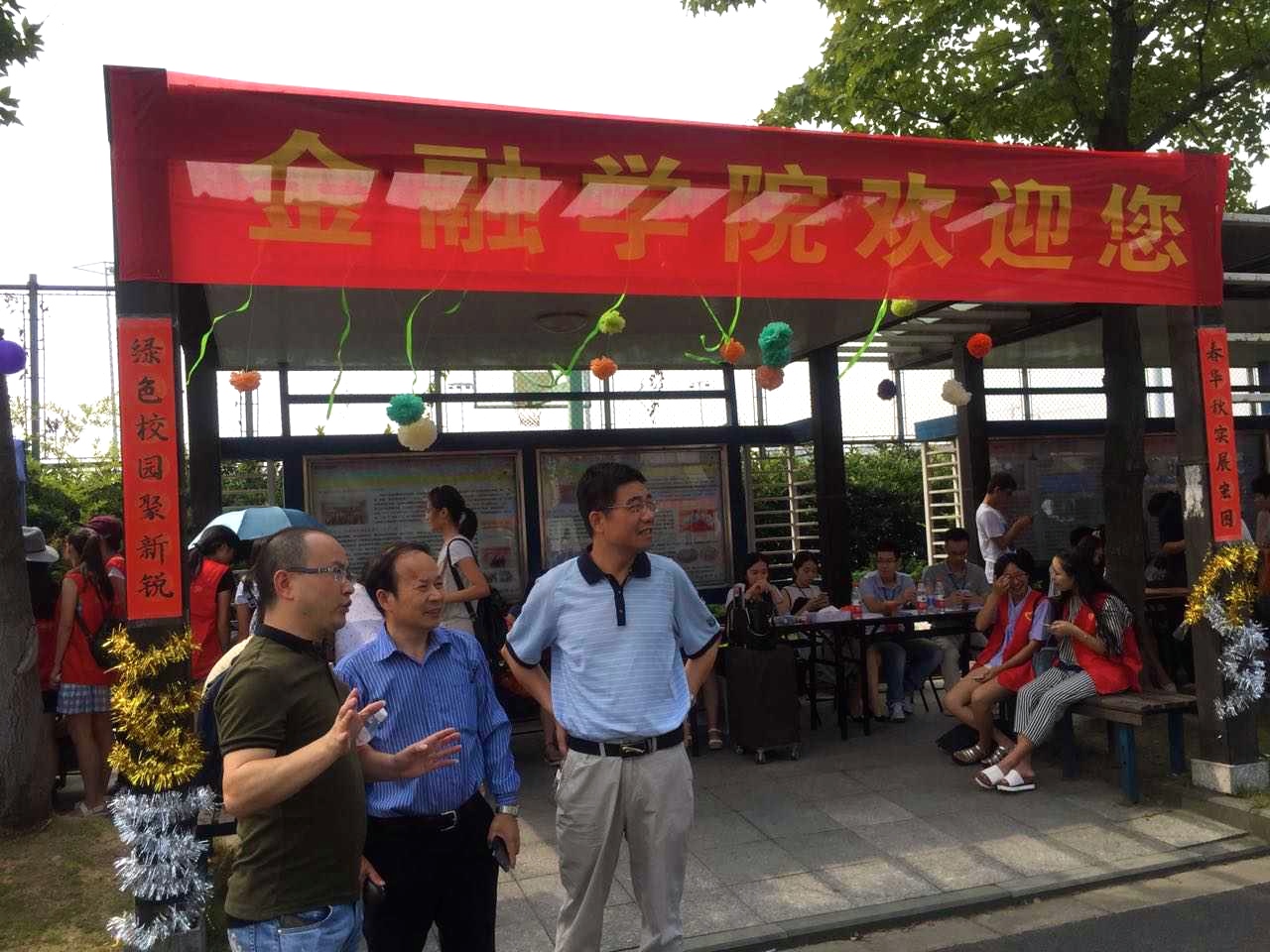 为保障迎新工作的顺利进行,党总支副书记陈伟老师和辅导员蒋超老师一早便赶到了现场,并向新生、家长介绍学院情况,成了我们迎新“志愿者”的一员。院长李连华教授、党总支书记杨鹰彪副教授也在报到点亲切慰问工作人员,向他们了解新生报到情况。