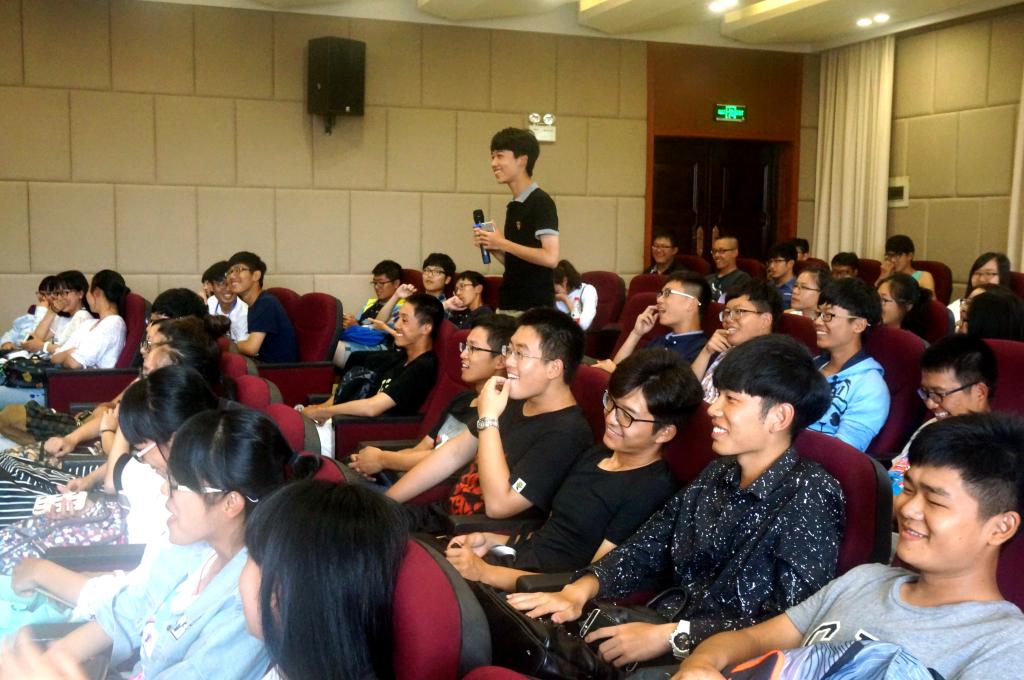 约翰·休斯校长对具有131年办学历史的班戈大学的建校渊源、师资力量、办学特色、课程设置、对外交流、体育锻炼、生活条件等方面的情况进行了介绍。之后,学生就自己感兴趣的学习、生活、人际交往等方面的问题与约翰·休斯校长进行了互动交流,整个交流会现场气氛轻松热烈,学生们的英语沟通能力和整体素质给约翰·休斯校长留下了深刻印象。学生们对正式开始大学课业的第二天就能够见到英国合作方——班戈大学校长非常开心,纷纷与校长合影留念。