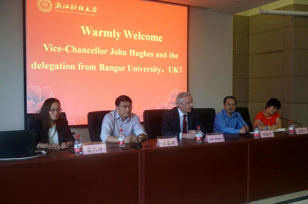 2015年9月22日下午,英国班戈大学约翰·休斯校长一行在校国际交流合作处处长余慕鸿的陪同下来到酷爱成人网
