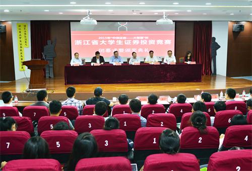 、杭州电子科技大学等高校在内的15支队伍;高职组团队包括浙江旅游职业技术学院等在内的11支队伍。杭州益恒投资有限公司董事长徐冠华先生作为评委代表致辞,鼓励、支持大学生积极投身证券市场,并提出给予我校优秀学生500万元资金用于实盘操作的大致规划。