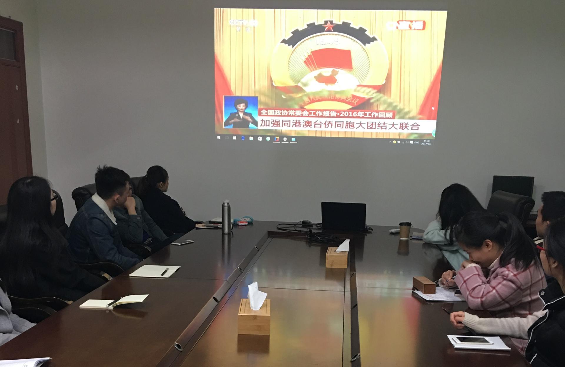 各学生党支部组织党员和积极分子在学院楼4楼会议室观看了全国政协十二届四次会议开幕式直播。