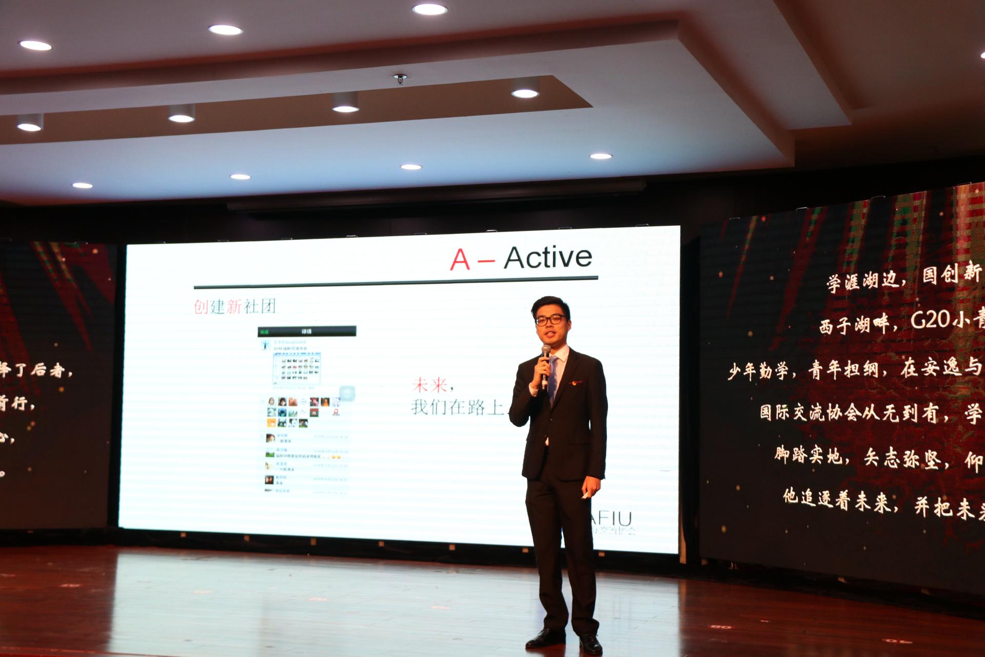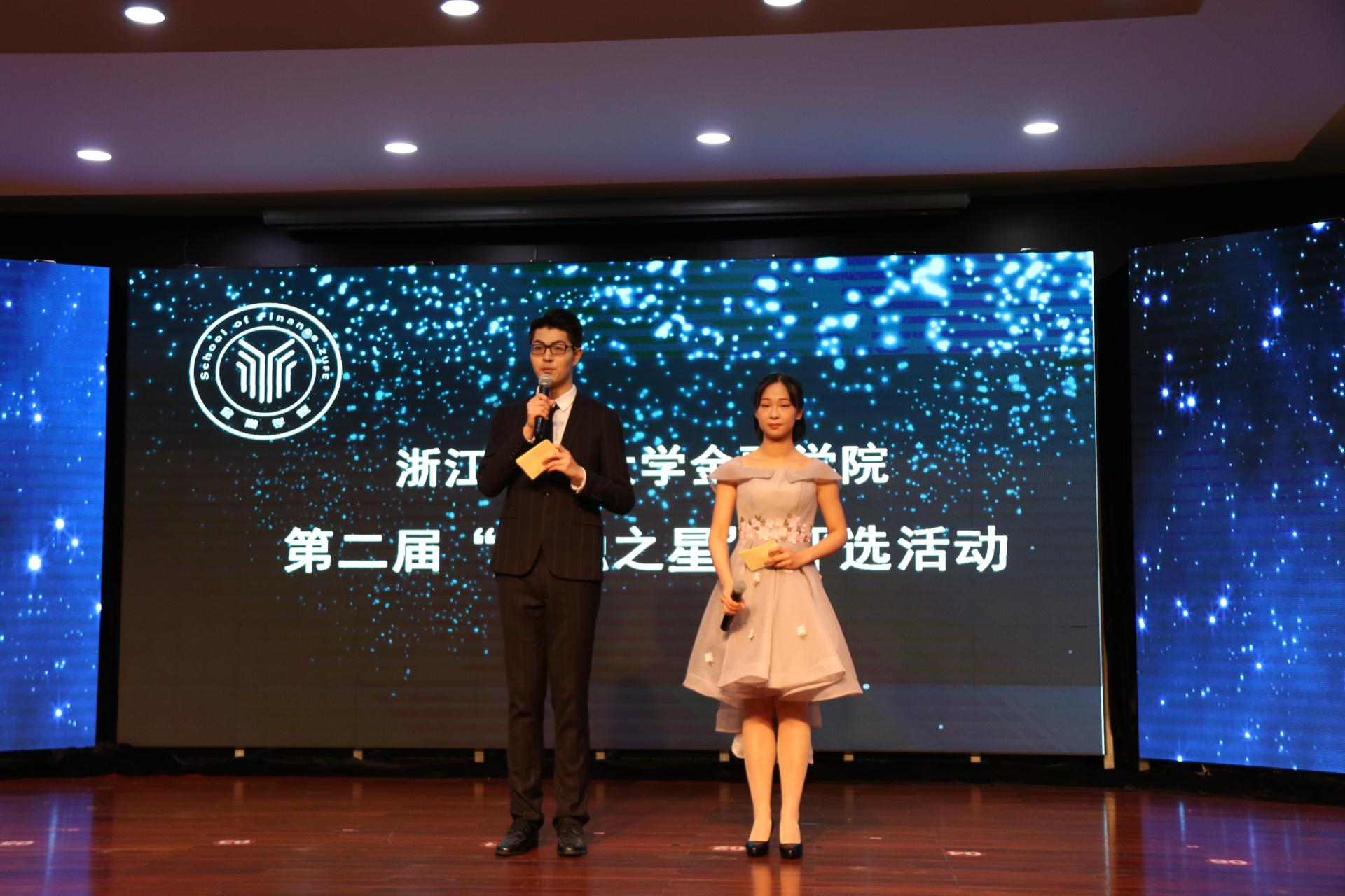 各年级共16名候选人以及8个候选班级进入决赛。首先,是“金融之星”个人评比环节。每位选手向在场观众们展示了他们独特的个人魅力,丰富的学习、活动经历等等。台下的评委和观众们都为他们投去了赞许的目光。