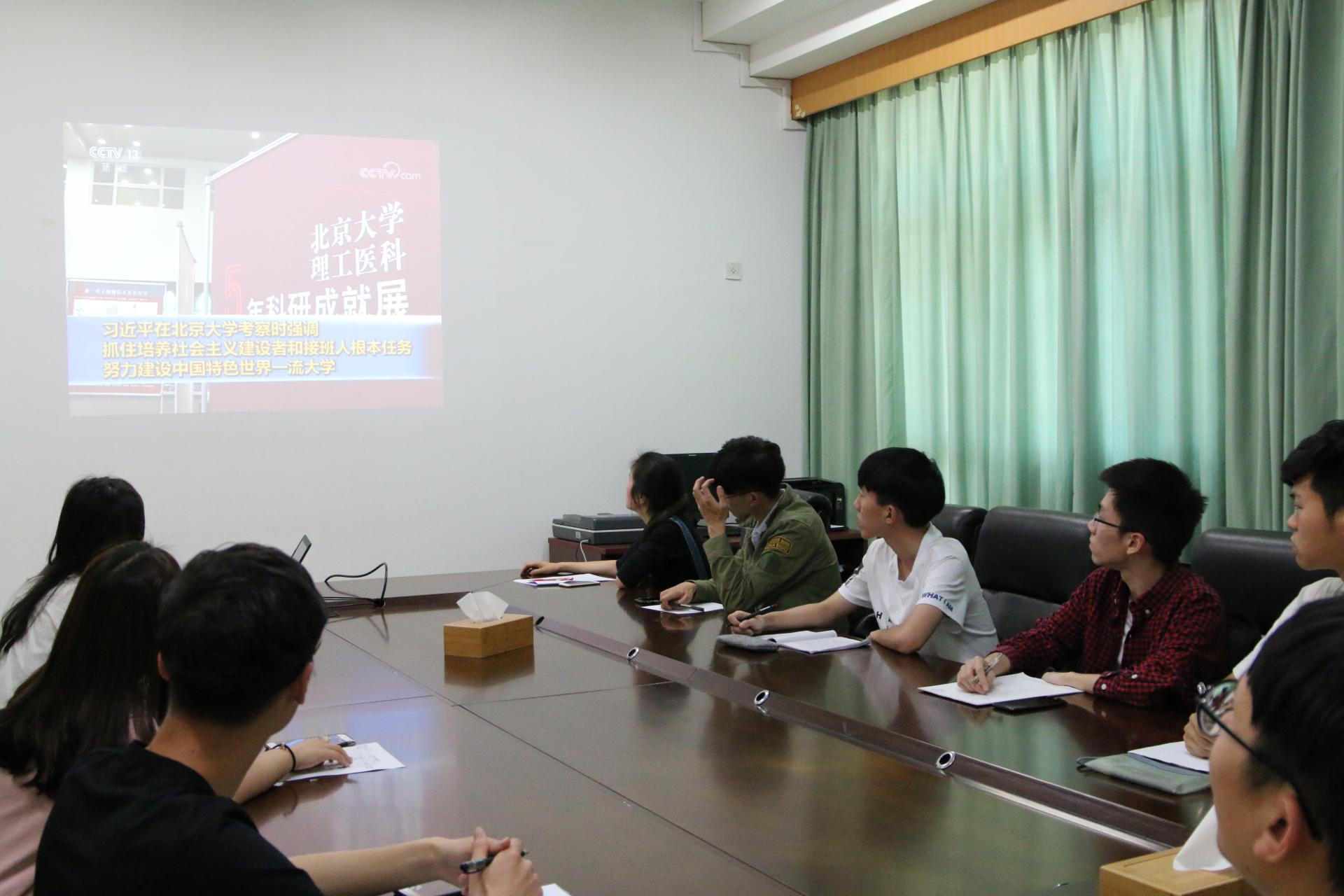 翟老师带领学生骨干共同学习了习近平总书记考察北京大学重要讲话精神。,翟老师认为习近平总书记在“五四”青年节前夕来到北京大学考察,体现了总书记对青年大学生的关心和关爱,作为学生骨干,要强化责任感和使命感,要按照习近平总书记提出的“爱国、励志、求真、力行”的四点要求,以青年大学生的责任和担当,知行合一,苦干实干,在新时代干出一番事业。