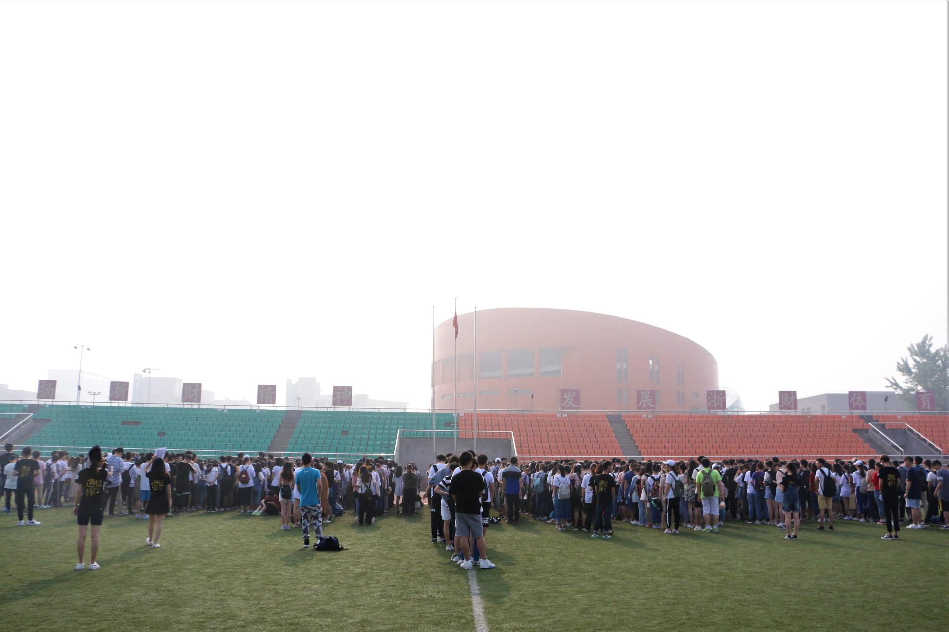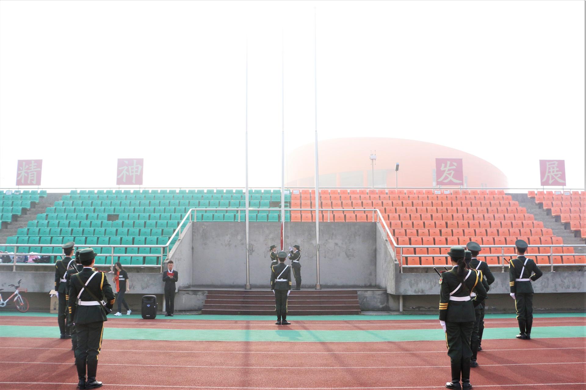 在西操场举行了升旗仪式,辅导员聂亚平老师以及全体大一、大二学生参加了此次仪式。