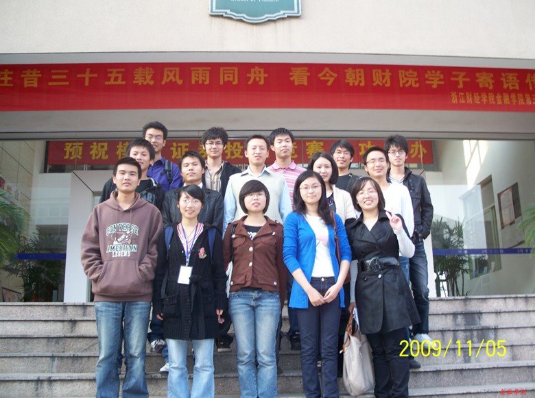 02级毕业生、杭州新元网络信息有限公司董事长、2006年赢在中国32强、02届金融学会会长陈泓江学长和金融学会的骨干们。