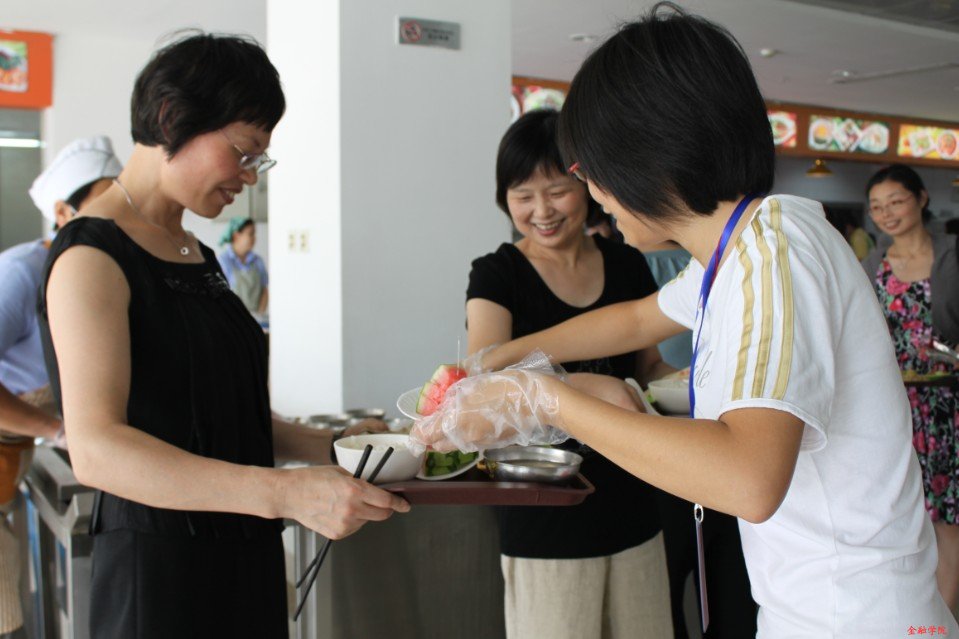 活动在学术餐厅进行,同学们将亲手制作的并事先装盘的水果赠送给就餐的老师,并致以节日的问候,道一声:“老师,您辛苦了!”