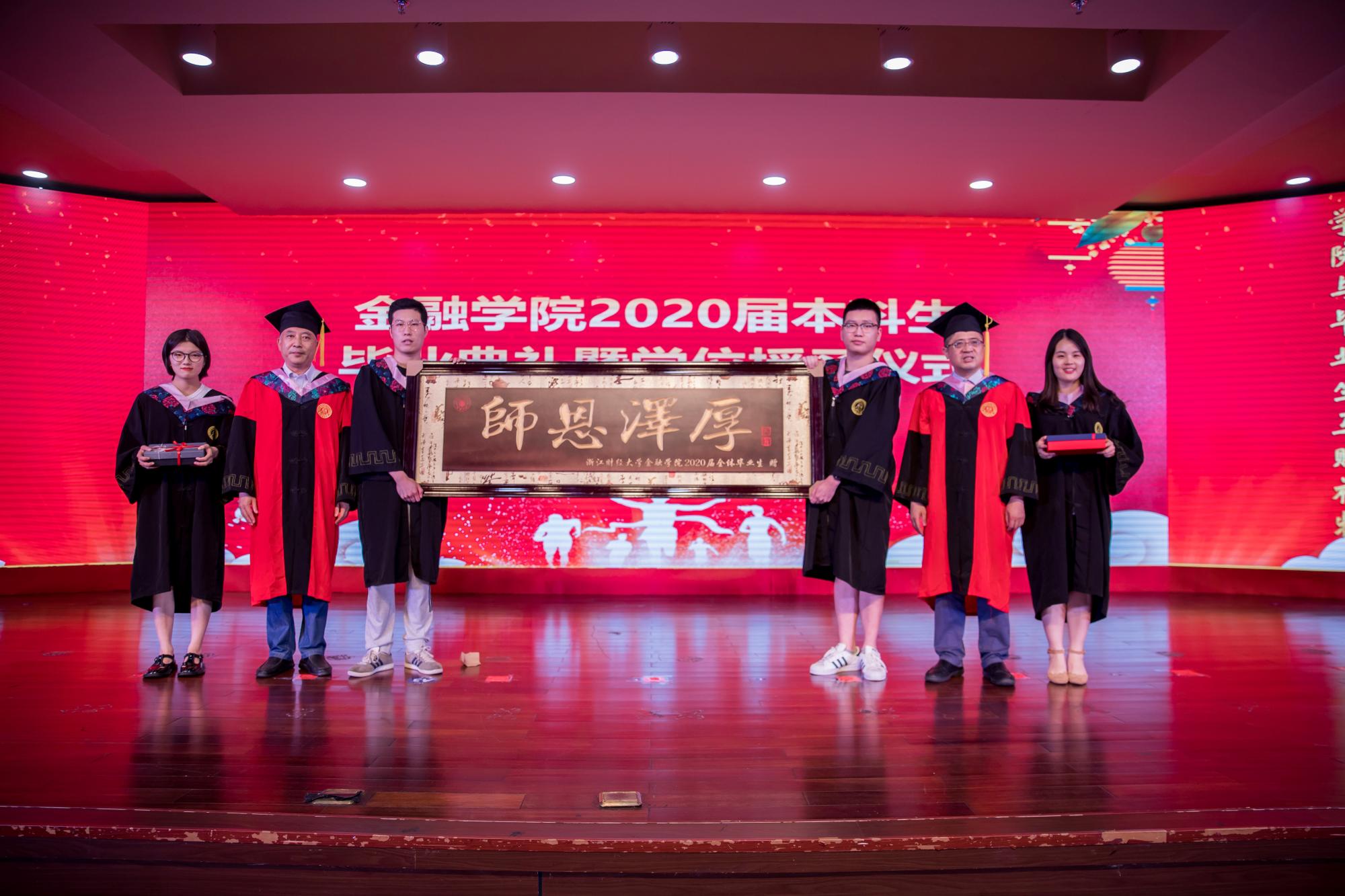 赠与毕业生一张浙财记忆的光盘,镌刻了金融学子的浙财四年时光,毕业生们则向学院赠送了写着“师恩泽厚”的牌匾,感谢老师们的谆谆教导。