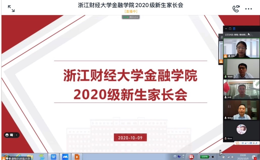 2020级新生的生源背景,并对获得“双财奖学金”的同学表示了祝贺。她鼓励同学们积极参与第二第三课堂,全面提升竞争力,为争取更高的目标而努力。最后,谢敏副书记还贴心地从新生适应问题、学业问题、心理问题、诚信问题、安全问题几个方面提出了几点建议,希望家长加强家校联系,帮助孩子培养独立自主能力,以更好地适应大学生活。