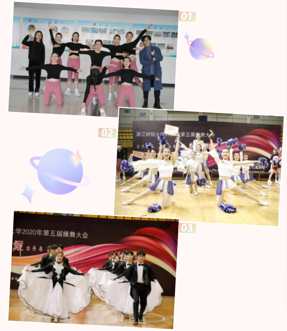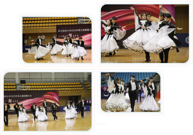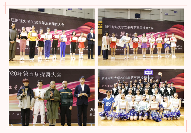 三支代表队参加了本次操舞大赛。他们用青春的热情与活力展现了浙财学子积极向上、阳光活泼的精神风貌。本次比赛由黄芬芬、姚智勇、王兵、杨蓓蓓等裁判员进行专业点评和打分。