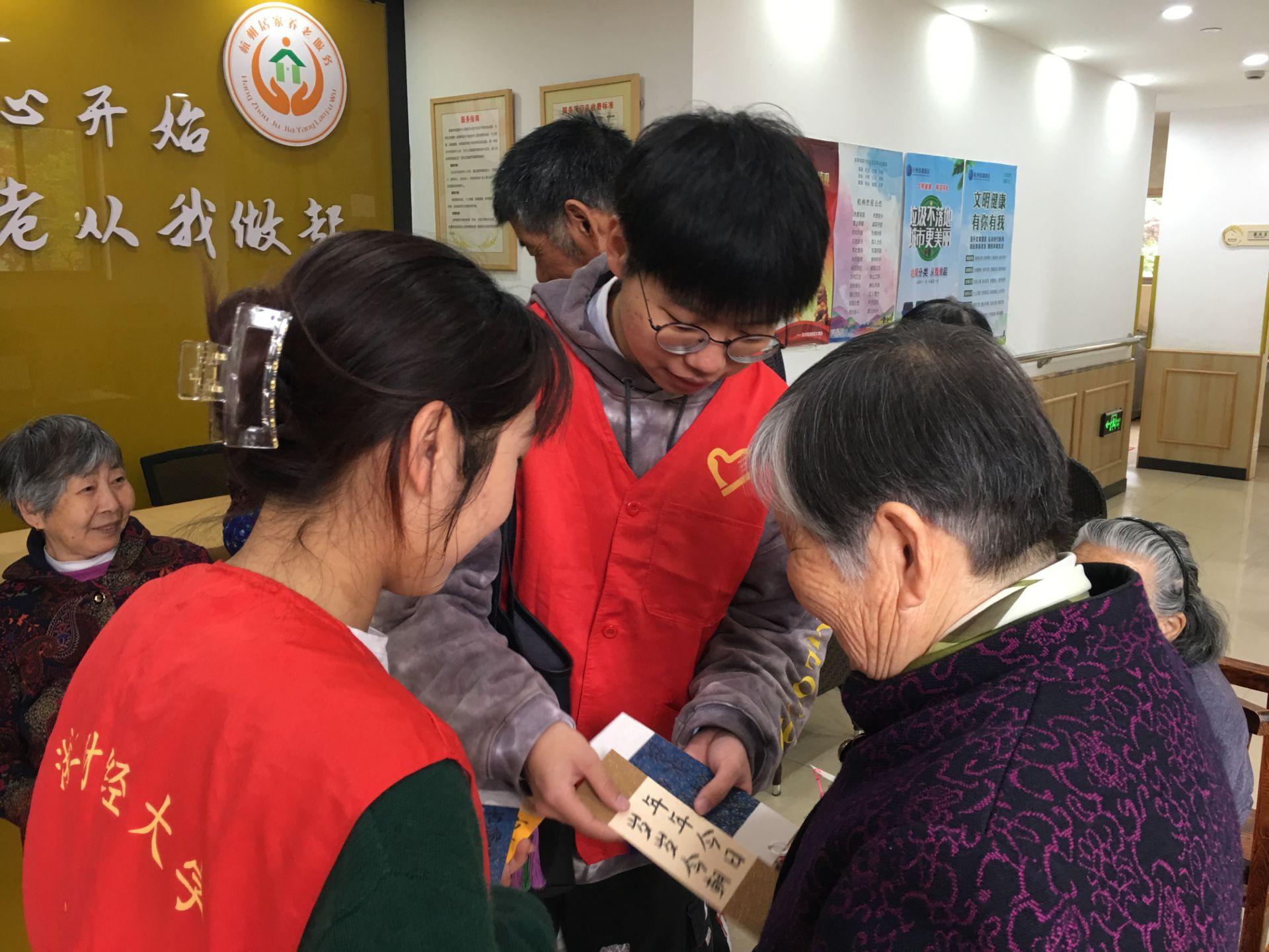 宣讲会后,金融志愿者们为老人们写下书签送去温暖与祝福,“益寿延年,笑口常开”、“春秋不老,松鹤长春”……这一句句美好的话语是每位青年志愿者的祝愿,也是送给老人们温暖诚挚的礼物,老人们脸上浮出的笑容便是送给青年志愿者们最好的回礼。