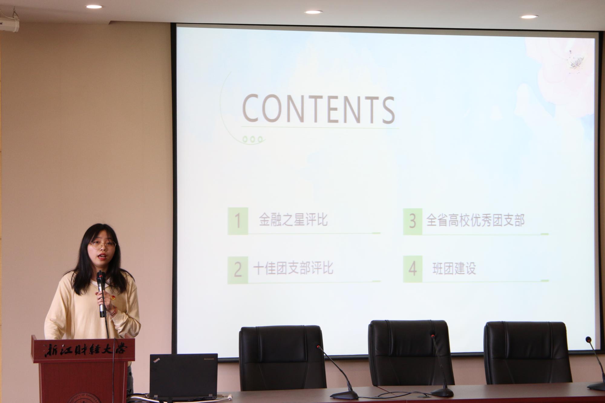 曾获浙江省 “千强团支部”荣誉称号的18金融3班团支部,也应邀为大家做分享。团支书肖彤从凝聚力、创新特色、优势互补三个角度分享了她对于班团建设的体会。她认为支部活动的开展应特别注意广泛征集支部同学的意见,增强支部成员的沟通。