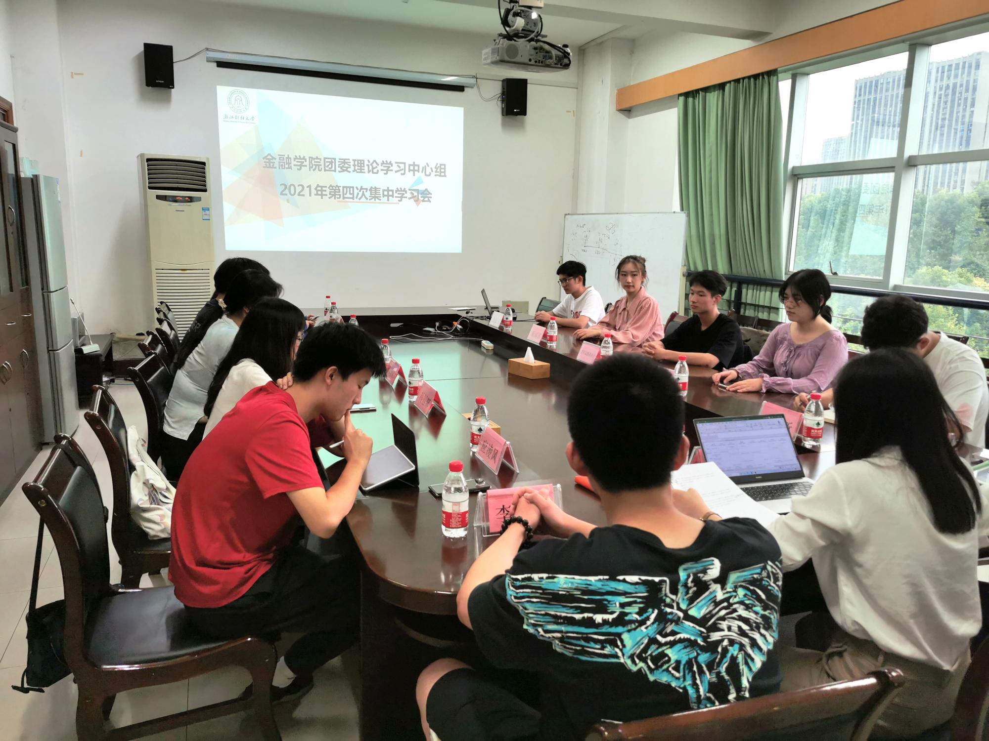 团委理论学习中心组2021年第四次集中学习会在3号楼422举行,会议学习《习近平总书记在庆祝中国共产党成立100周年大会上的讲话》精神,学院团委书记王伟伟、团委副书记范家昕、学生会主席团成员及团委学生会部门负责人参加了学习会,会议由王伟伟主持。