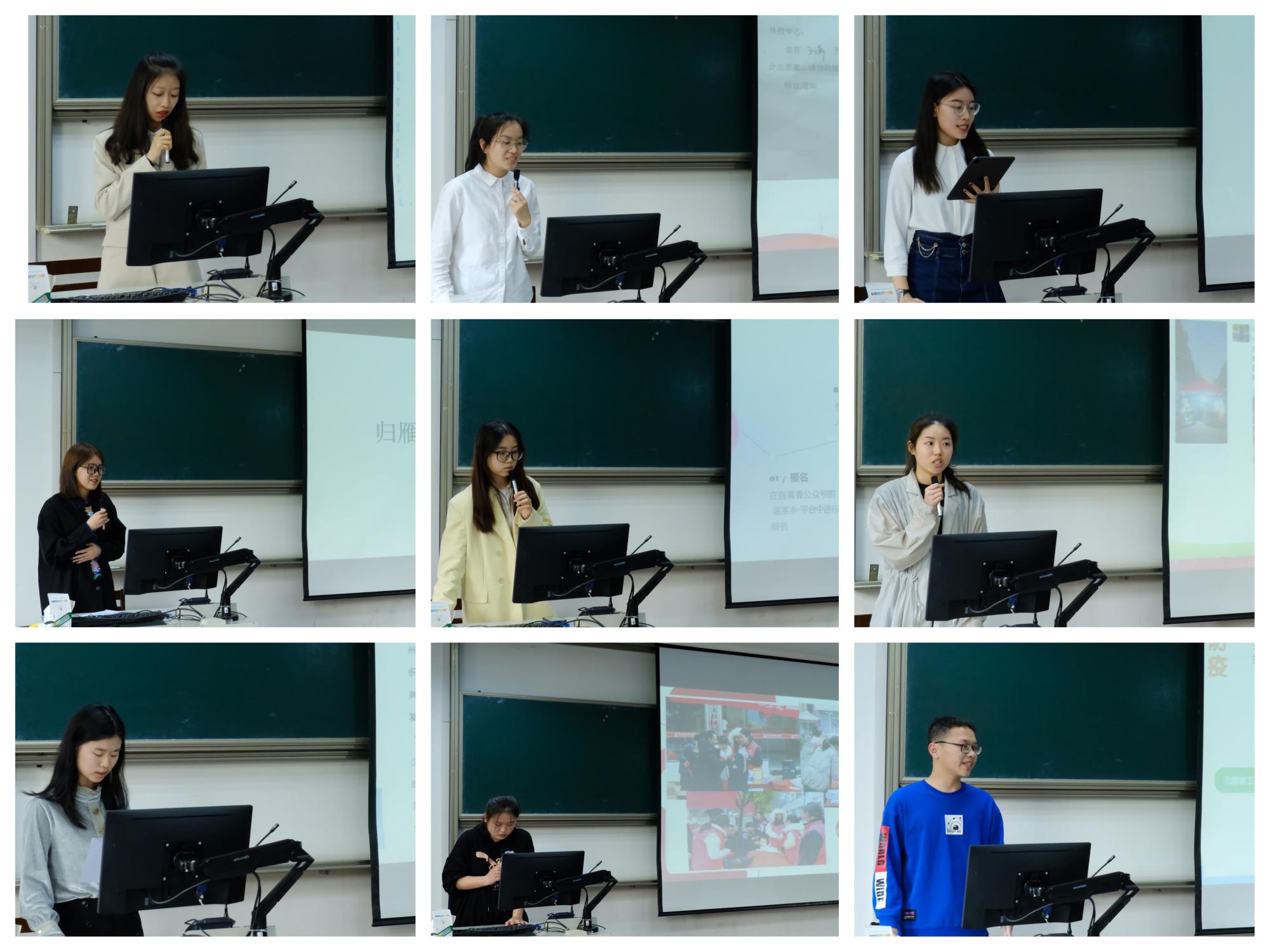 此次评选分为个人成果展示和评委打分两个部分。在展示环节中,学子们通过演示文稿和个人演讲的方式将实践活动中的经历、感受和感悟娓娓道来,总结了在实践活动中的收获和对家乡发展的期待。接着评委们从活动准备、主题重点、工作开展和成效成果等四个方面对实践成果予以点评和打分。经过评审,以下9位同学荣获寒假社会实践“先进个人”荣誉称号。
