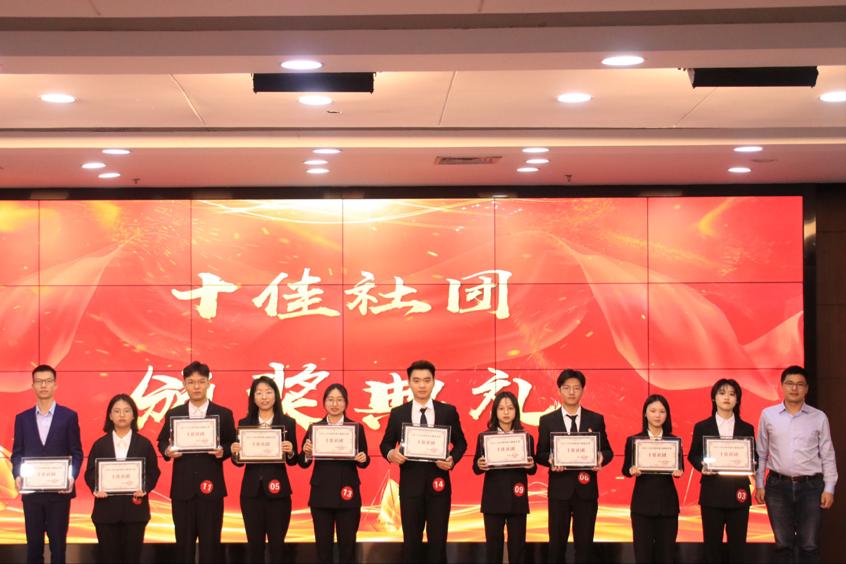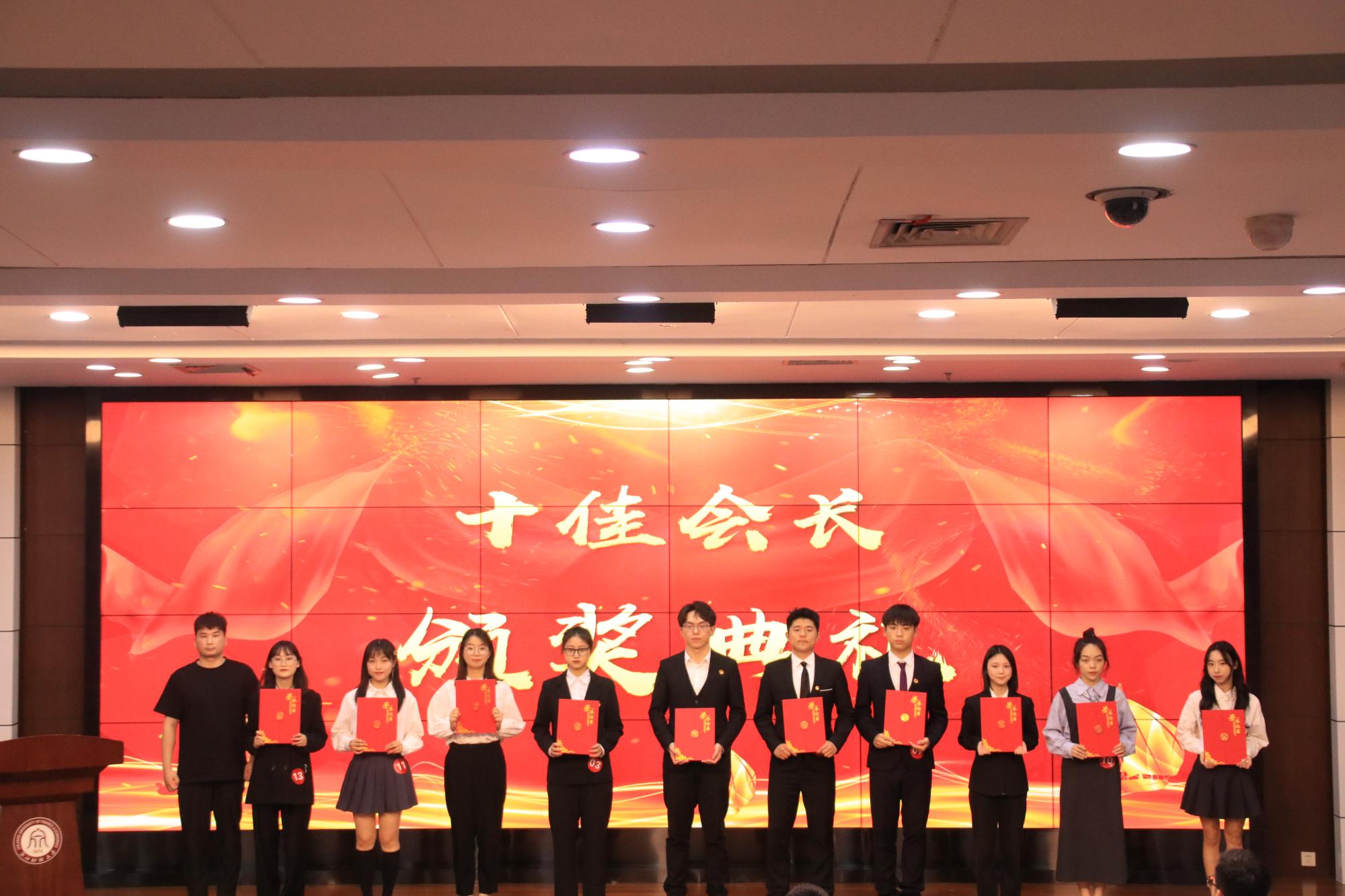 金融学会以总分第一的好成绩荣获“十佳社团”称号,金融学会会长方嘉鹏,金融工程学会会长傅晴和,公司金融学会会长蒋琛荣获“十佳会长”称号。