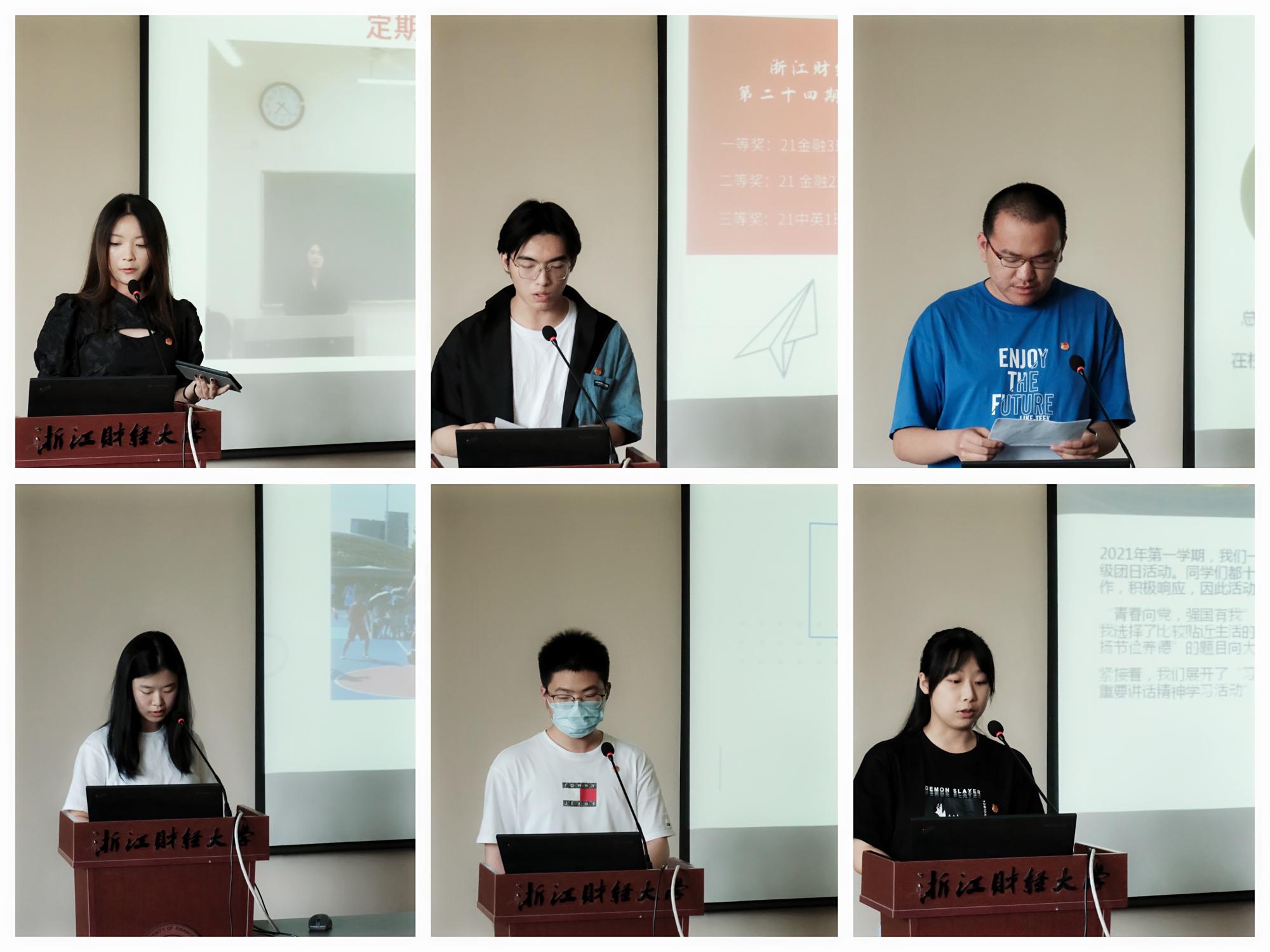 会议最后,边华菁老师、卢轩宇老师、刘仰璟老师分别为团支部风采展示一、二、三等奖获奖团支部团支书进行颁奖。