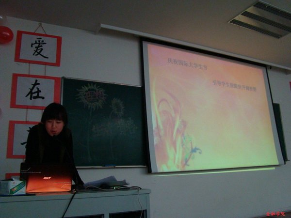 在此次团日活动中,金2班以“国际大学生节”为主题,开展了为期近半个月的系列活动,旨在庆祝第64个国际大学生节,同时也为引导学生放眼世界、开阔视野,为丰富校园文化生活,缓解辛苦学习带来的紧张疲劳,为同学们搭建了一个充满想象的舞台,让你、我、他在我们大学生自己的节日里尽情地绽放风采,一展新一代大学生的魅力与风采。