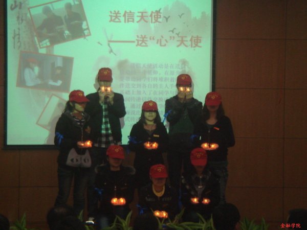 “小小信函表心意,送信天使帮传递”。在送信天使的启动仪式上,送信天使手捧点亮的蜡烛,与观众用手机拼出的亮光爱心交相辉映,他们怀着感恩与祝福之情,为在座的老师送上了金融学子对学校的美好祝愿。配合“感恩”,酷爱成人网