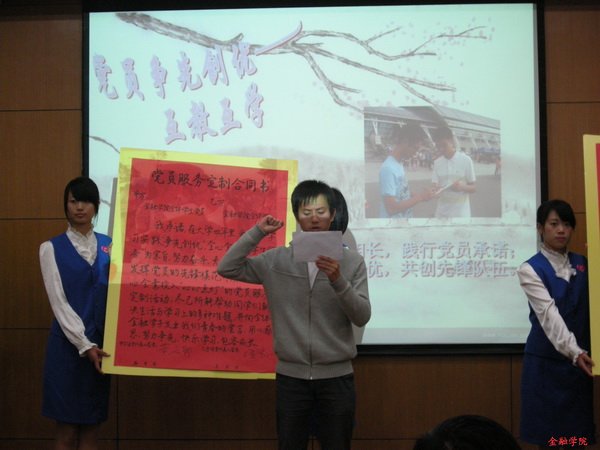 接着,党员代表和新生代表上台,共同签订了《党员服务订制合同书》,使党员与学生之间形成了一种更为紧密、更为友好的朋辈关爱关系,更有利于“学生党员互教互学”系列活动的顺利开展。