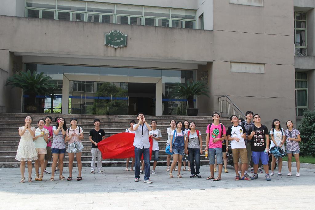 学生齐聚学院楼,为老师们献上教师节的衷心祝福。