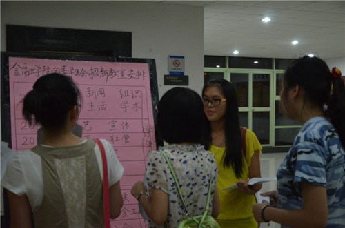 之后,招新工作正式开始。同学们虽然经过了一天艰苦的军训,但依旧活力充沛,对各社团和学生会充满了好奇与憧憬。学生会各部门和其他各个社团也热情地向同学们宣传与展示了各自的特色与优势,并耐心地对同学们的提问进行解答,以便帮助同学们更好地做出选择。同学们也根据自身特点,到自己所心仪的部门去面试。同学们紧张而又期待地等待面试,招新工作有条不紊地展开。各部门负责人也本着公平公正的原则,认真地对前来的同学进行多方面的考察,为自己部门选出最合适的人才。许多同学条理清晰的回答,沉着冷静的应对以及大方从容的态度给评委们留下来深刻的印象。