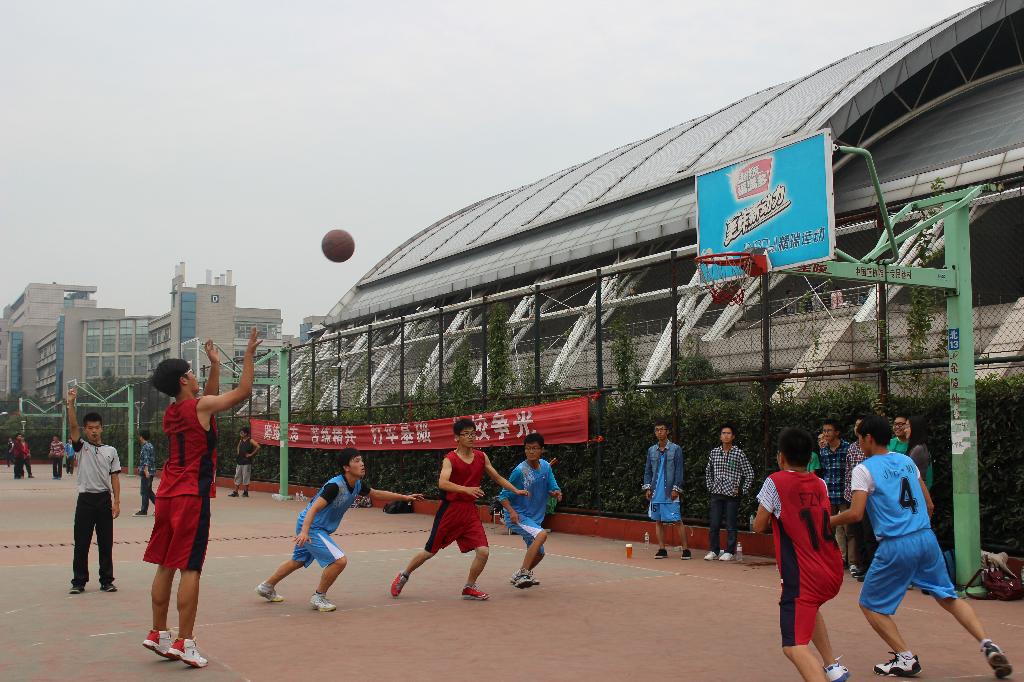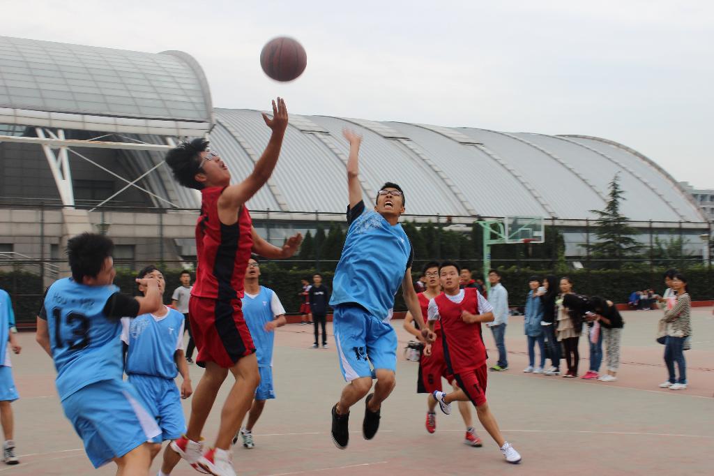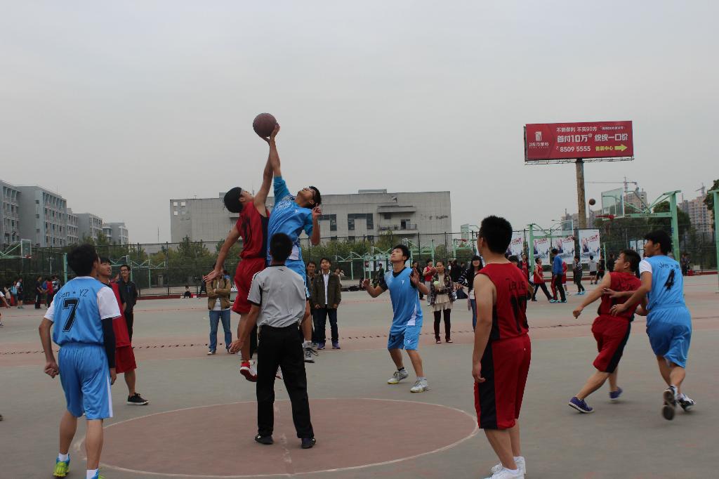 体育部组织的新生篮球赛半决赛在学校篮球场火热开战。本次比赛的双方是13金融工程班和13金融1班,本场比赛共分四节,胜利的一方将进入到冠军的角逐。
