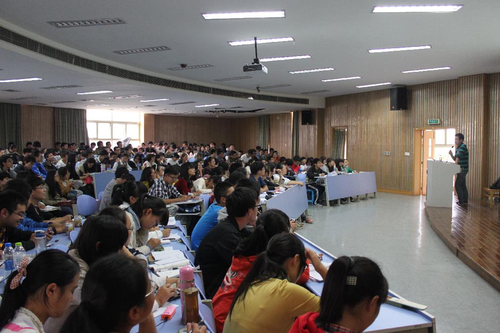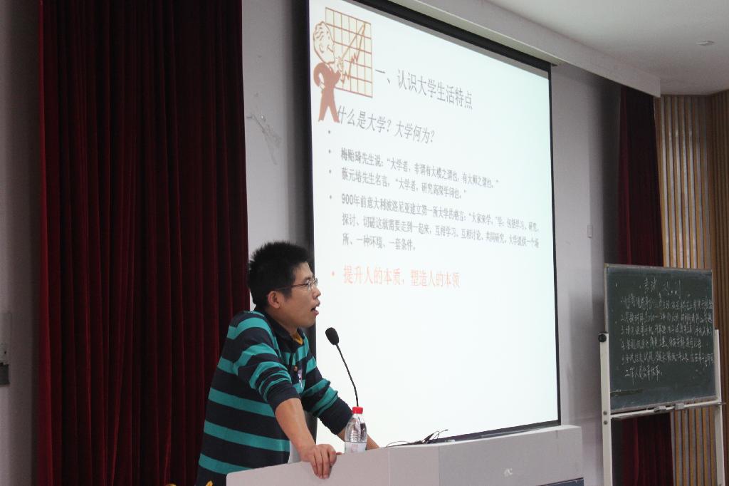作为本学期第一讲团课,尹怀玉老师从“大学”入手,讲解了什么是大学、大学生活中的七大问题以及大学生活中的变化。而关于料理生活和财务管理调配问题更是引起了大家的热烈讨论,将团课的课堂气氛推向了高潮。随后,尹怀玉老师又对同学们提出了关于交际、学习以及个人能力培养的基本要求,也让同学们对大学有了更深层次的理解和认知。“己所欲,慎施于人”的看法,更是给在场的同学深刻的启示。而针对“要不要考研?”这个热点问题,尹怀玉老师也为想在求学之路上走的更远的同学提出了一些自己的建议。除此之外,细心的尹怀玉老师还将其认为大学四年中应该做的事情一一列举,希望同学们的大学生活更为充实。尹怀玉老师略带幽默的话语以及思维独特的见解,让在座的同学们都领略到了他的风采,也在本次团课中获得许多收获。